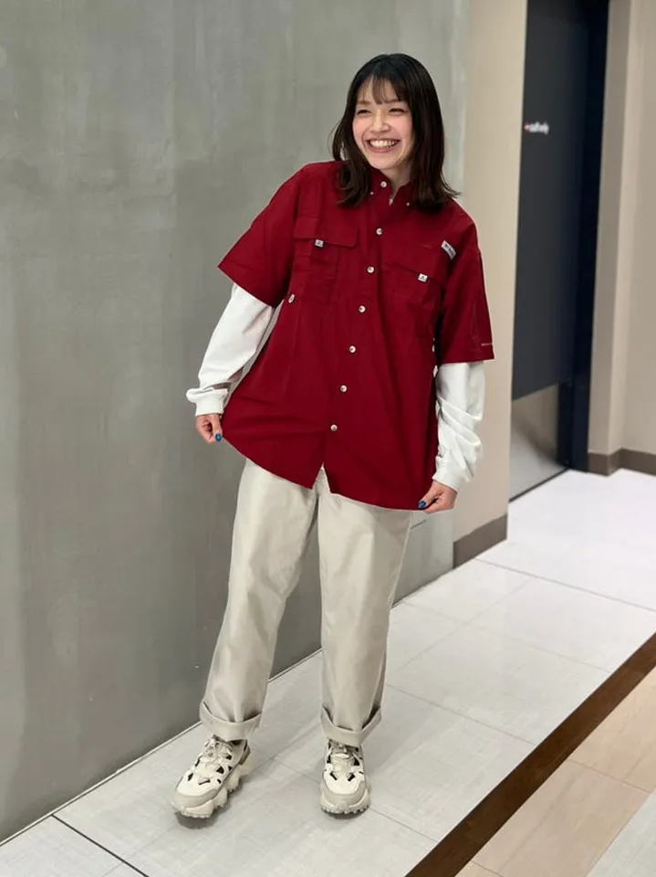 毎年大人気PFGシリーズの通気性がよく着回し力抜群のバハマシャツをメインにコーデを組んでみました!気温に合わせて袖をロールアップするも良し!たすき掛けでアレンジするも良し!好みに合わせてさまざまなスタイリングが可能。アウトドア感あるデザインですがタウンにも馴染み落ち着いた印象に!ゆったりと動きやすく1枚持っていればアウトドアとタウン両方楽しめます。