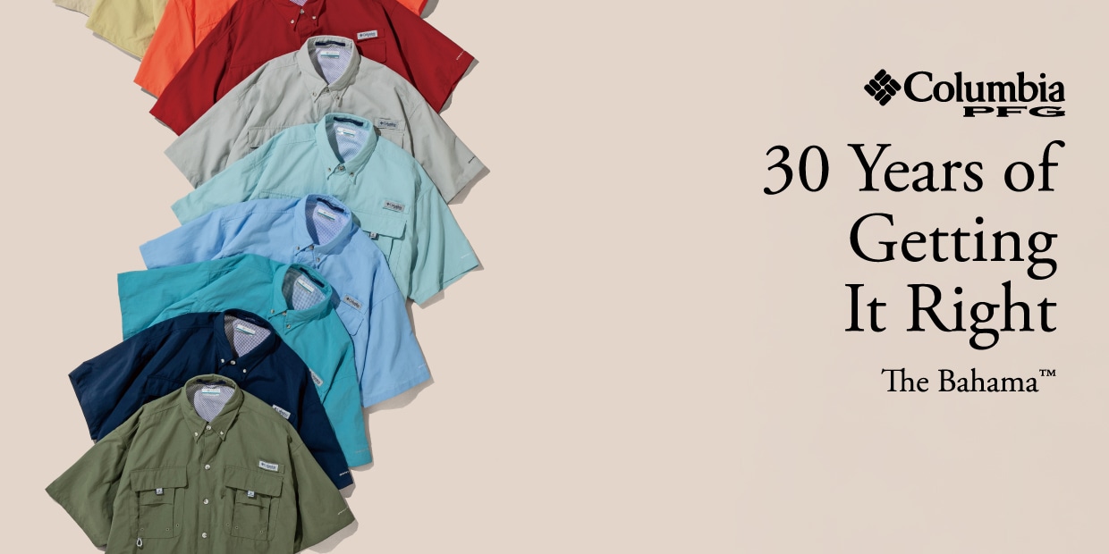 今年30周年を迎えるColumbiaの名作「バハマシャツ」。背面ベンチレーション機能やUVカットがついてるので、夏も涼しく快適に過ごせます。さらに、カラーバリエーションも豊富で、お好みのカラーが見つけられること間違いなしです。