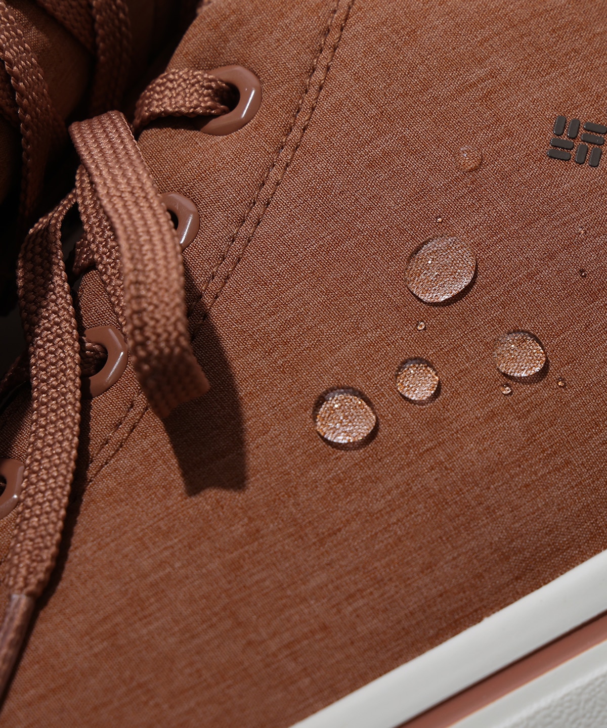 アッパーはウォータープルーフ仕様で、さらに撥水加工を高める高密度のポリエステル素材を採用