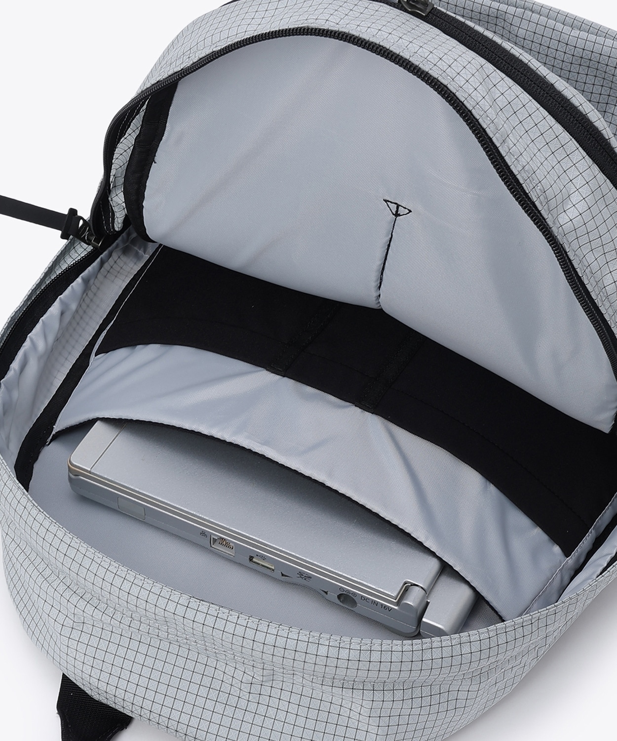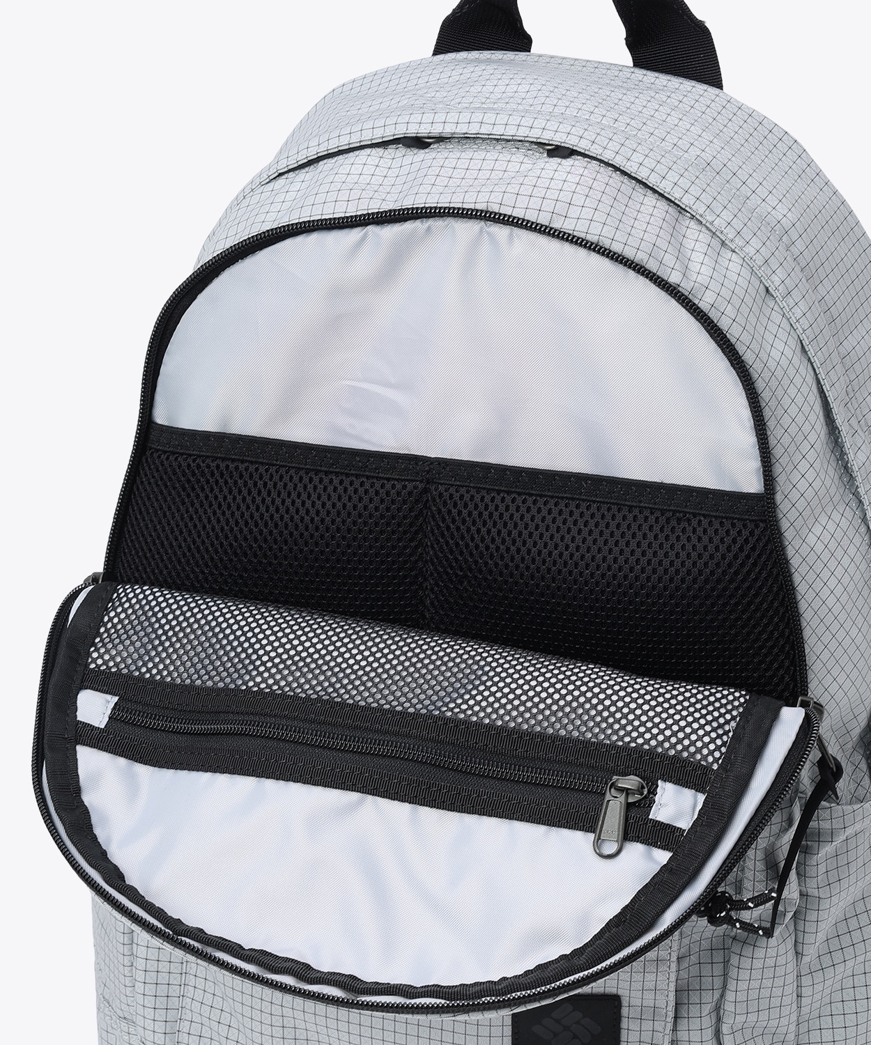 セカンドコンパートメントはデジタルガジェットの整理に便利なメッシュポケットとスポンジメッシュポケット