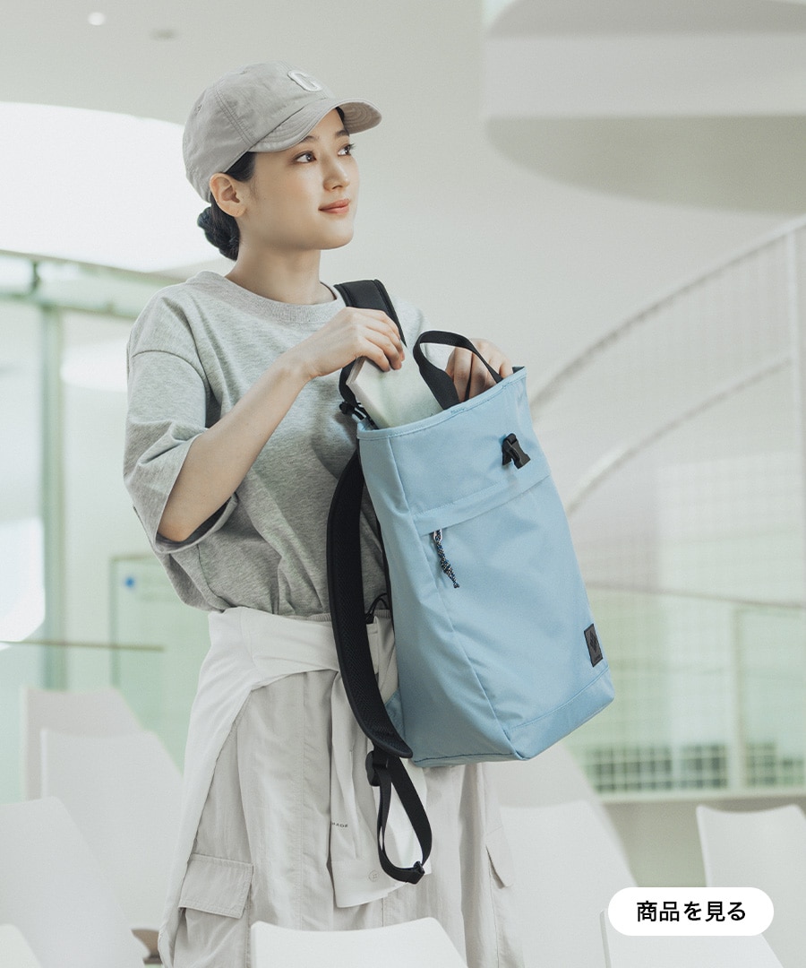 耐久性、収納性に優れたスタイルを選ばない様々なシーンで重宝するバックパックコレクション。 小型バックパックやショルダーバッグ、2wayトートをはじめ、 子育てシーンを想定したマルチトートバッグなど多彩にラインナップ。