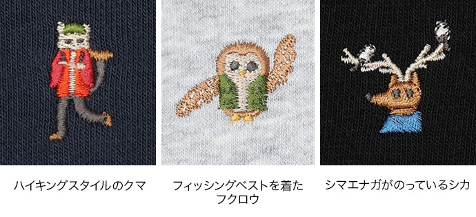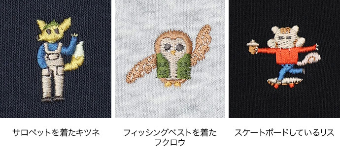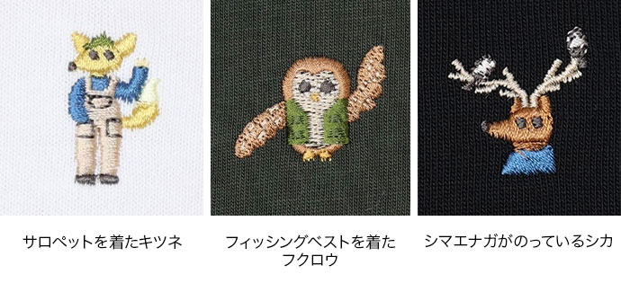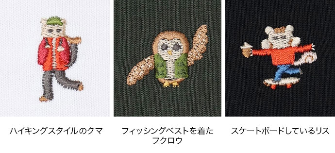 公式オンラインストア限定で、ルルさんが描いた様々なキャラクターの刺繍が入ったTシャツやスウェットを展開。カラー毎に異なる刺繍で、色違いで揃えたくなるアイテムです。