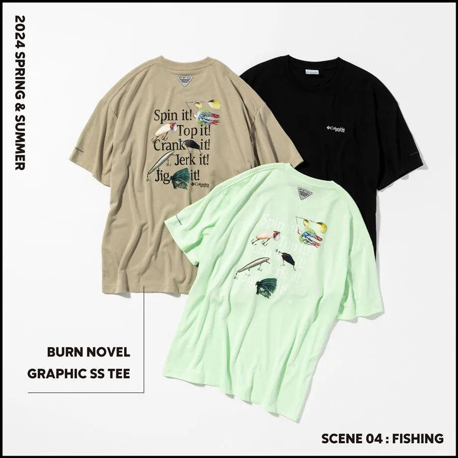 アーカイブからインスピレーションを得たグラフィックを落とし込んだ「バーンノベルグラフィックショートスリーブティー」は吸湿速乾機能が発汗時のべたつきや汗冷えを軽減し、サンプロテクション機能が紫外線対策にも効果的となっています。