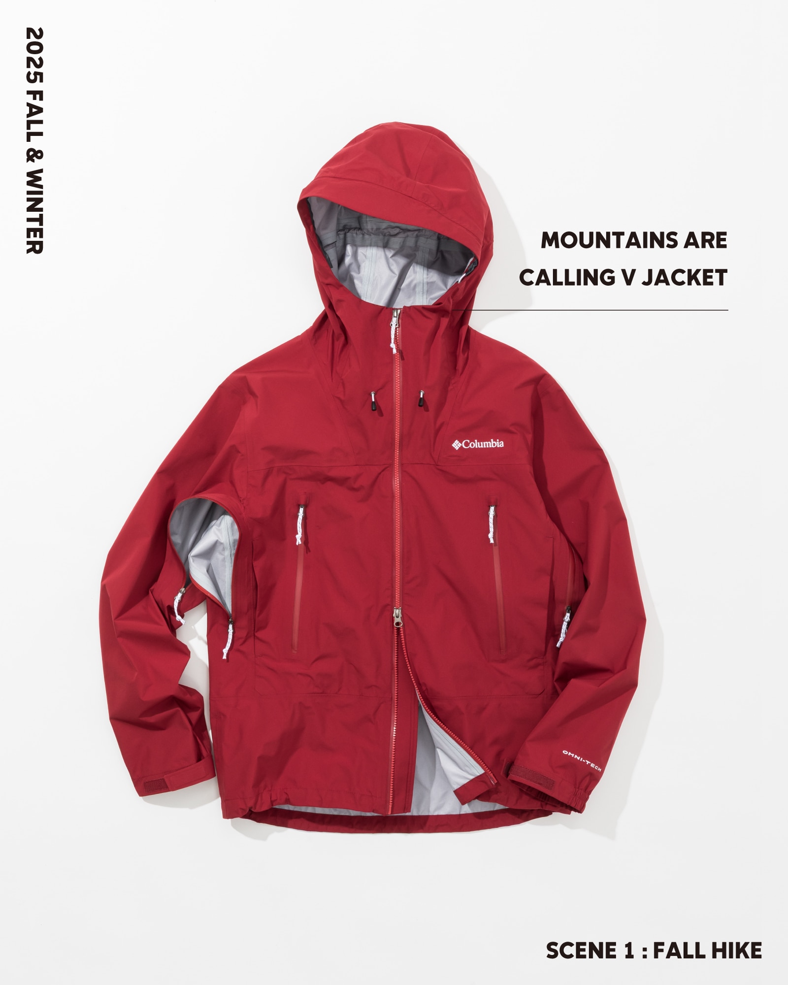 オムニテック搭載の3レイヤー構造で高い防水透湿性と耐久性を実現。ベンチレーションや胸ポケットなど機能性も充実し、コンパクトに携行可能。 -