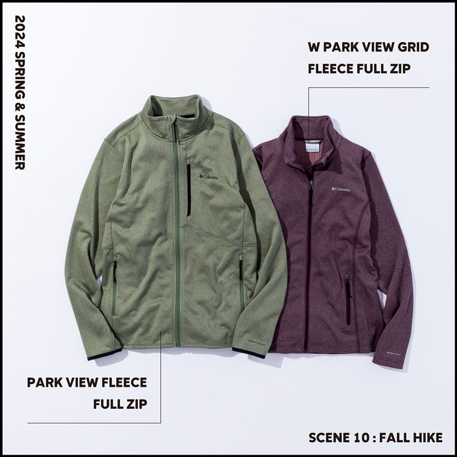 一方、宿泊や休憩時には、「パークビューグリッドフリースフルジップ」や「マウンテンズアーコーリングインシュレイテッドジャケット」が活躍します。高い保温力を誇り、軽量ながらも身体をしっかりと温めます。