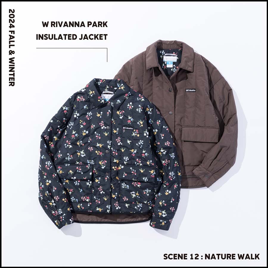 自然の中で強く咲く高山植物からインスパイアされた小花柄を落とし込んだ「ウィメンズリヴァナパークインシュレーテッドジャケット」は、水を効果的に弾くはっ水機能オムニシールドを搭載しています。