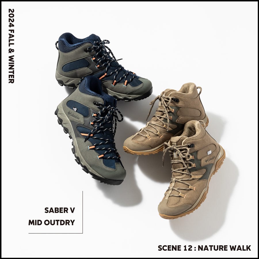 「自然散策には、様々な環境や路面コンディションでも高いパフォーマンスを発揮するコロンビア定番の防水ハイキングシューズ「セイバー ファイブ ミッド アウトドライ」や、軽量性と耐久性を兼ね備えた収納力抜群の「ワクレラ 28L バックパック」がおすすめです。シンプルなデザインながら、機能性をしっかり備えたこれらのアイテムで、秋の自然散策をさらに快適に楽しんでください。