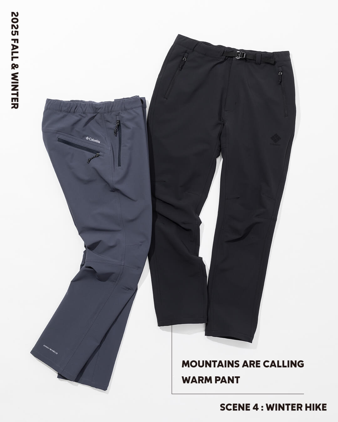 裏起毛仕様であたたかく、優れたストレッチ性を備えたパンツ。動きやすさと保温性を両立し、冬の低山ハイクに最適。 -