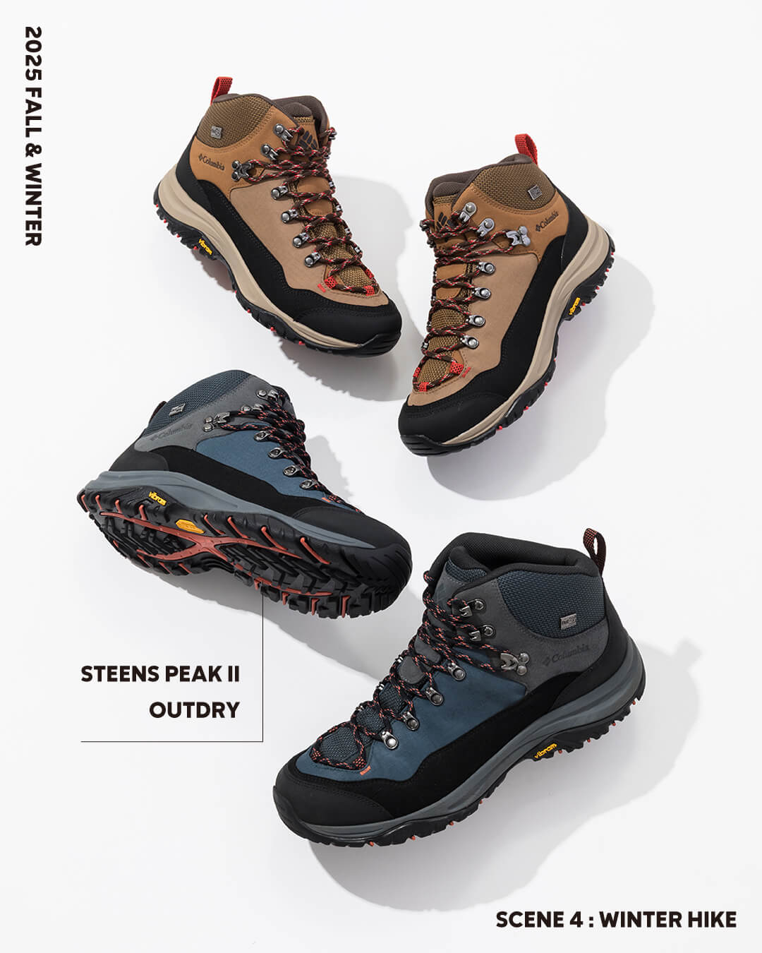 防水透湿機能OUTDRYが雪やぬかるみをブロック。優れたグリップ力と安定性で、冬のトレイルを快適に歩ける一足。 -
