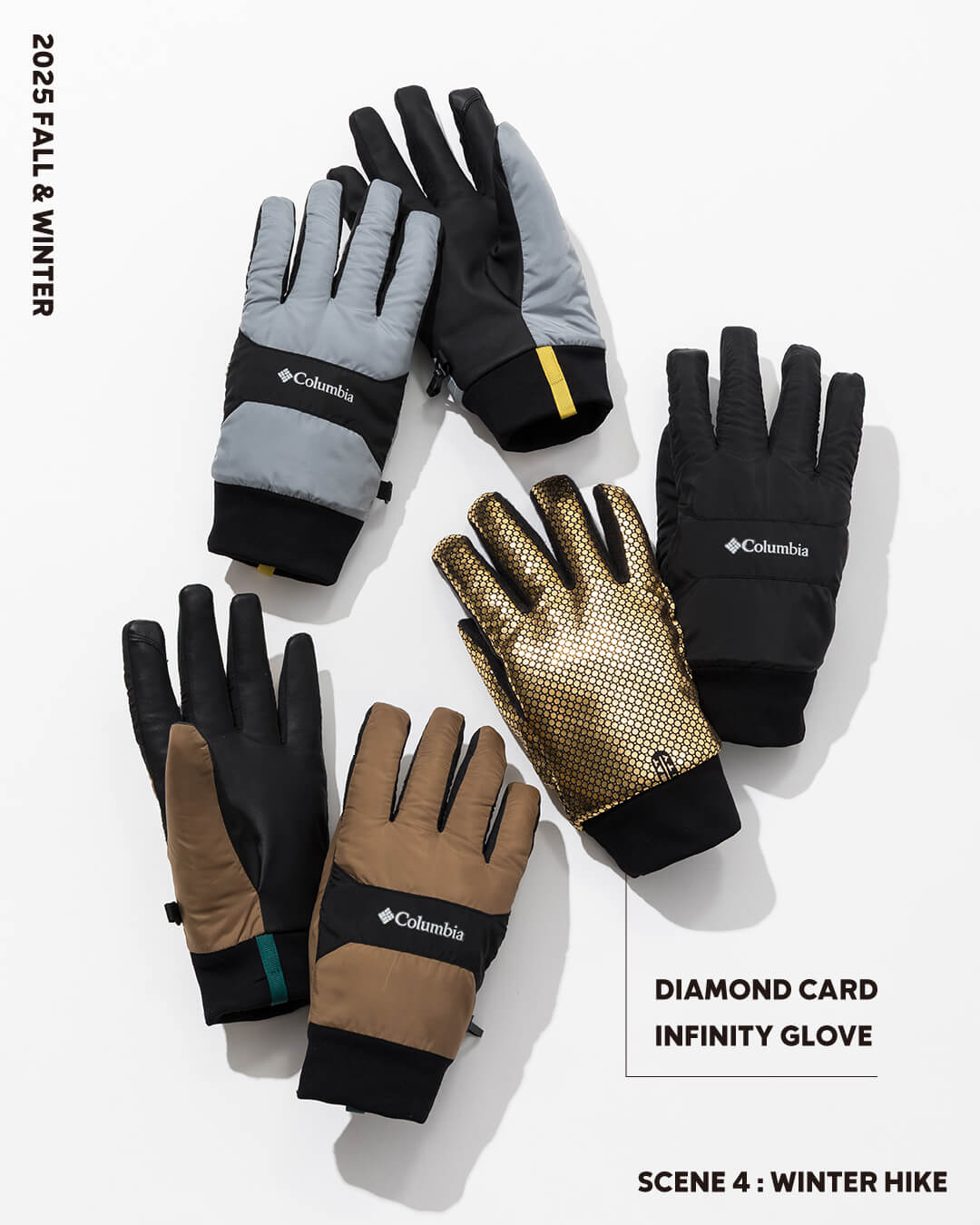 熱反射保温テクノロジーOMNI-HEAT INFINITYを搭載し、保温性に優れたグローブ。グリップ性を高めた手のひら設計で、トレッキングポール操作もスムーズ。スマートフォン対応で利便性も◎。 -
