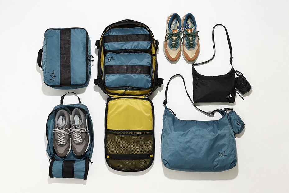 ファスナーの開閉で8Lの拡張が可能なバックパックには、ジャストサイズで収まる収納ケースがおすすめ!また小さく収まるショルダーバッグがあれば、お土産が増えても安心です。シューズには防水機能が備わり、高いクッション性と優れた通気性を併せ持つインソールが入っているので、長時間の歩行も快適です。