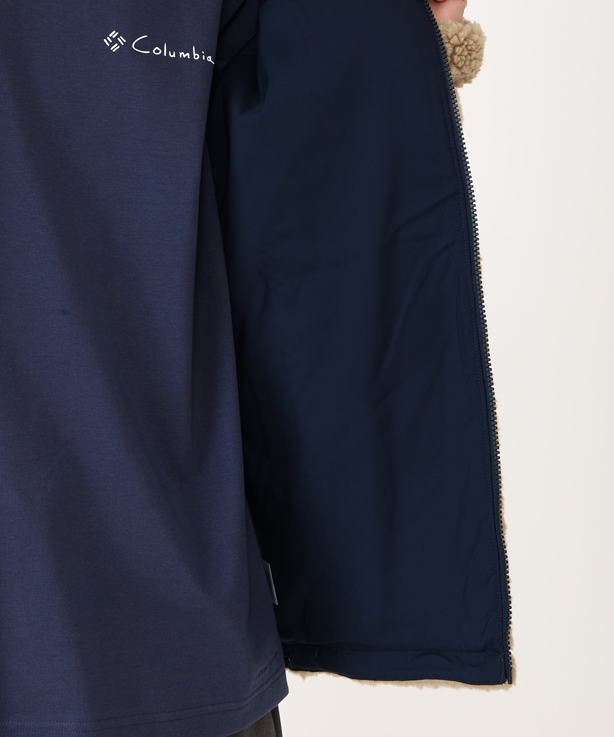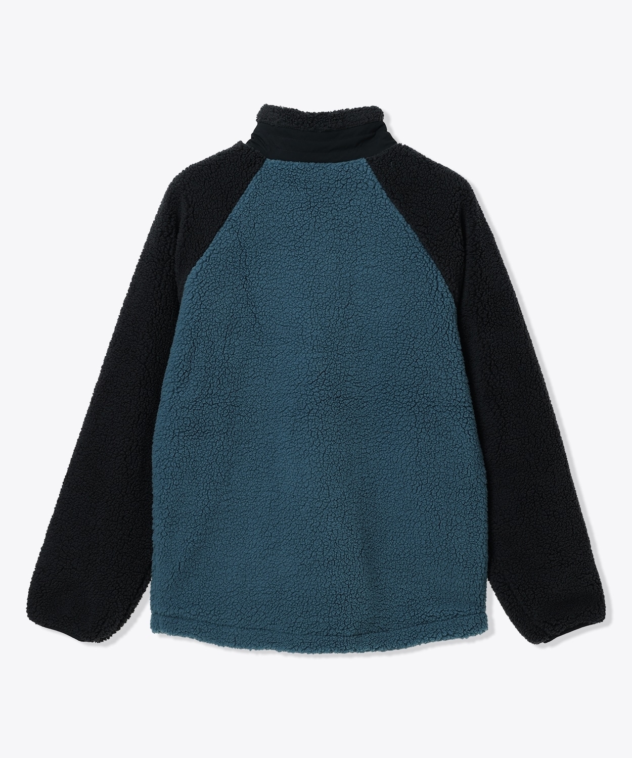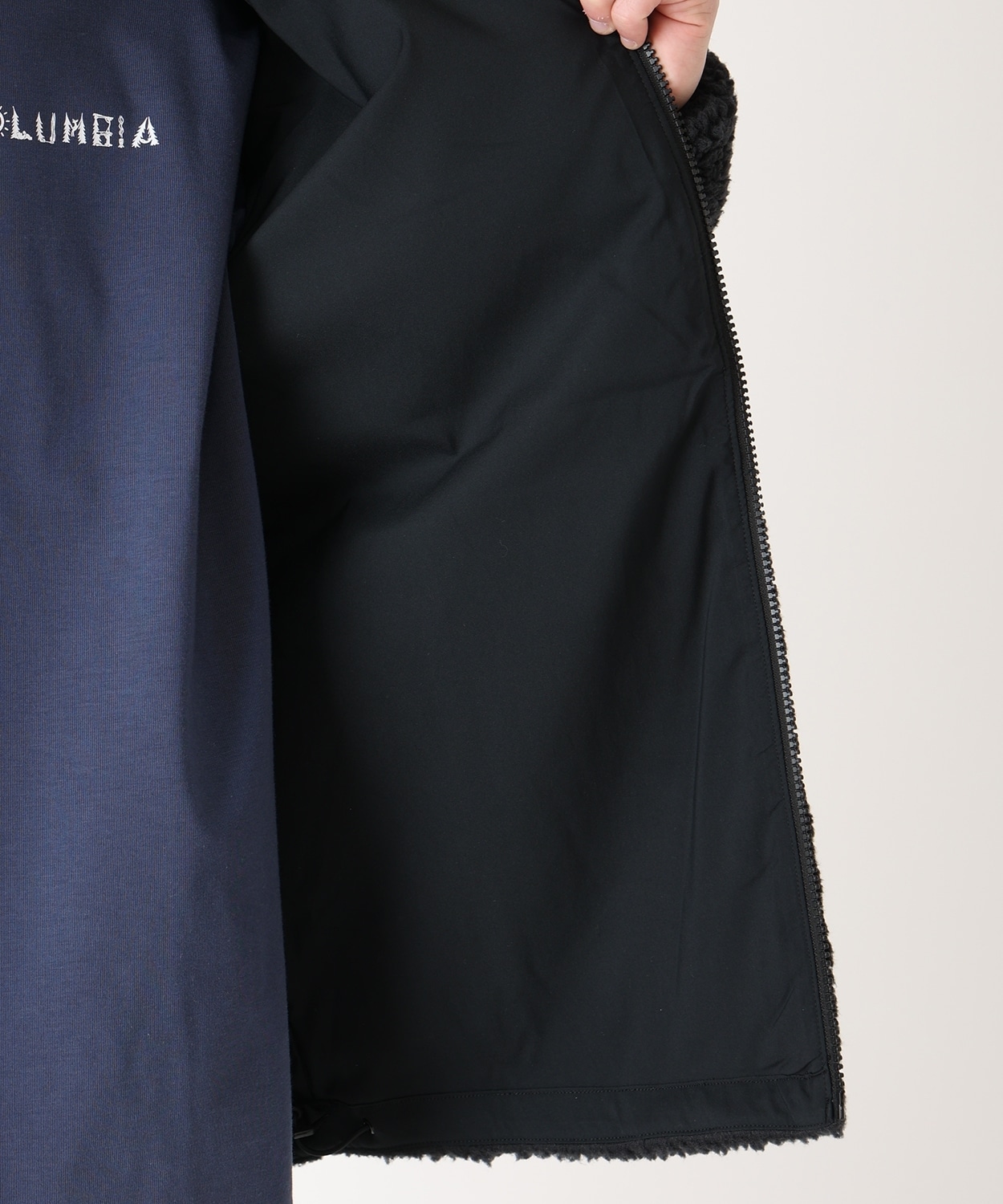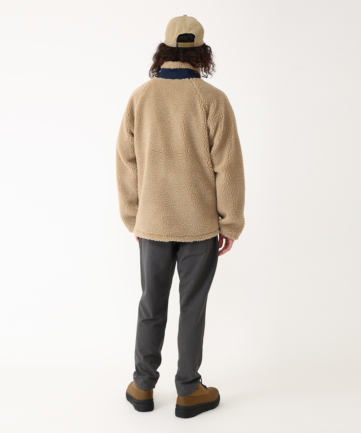 ソフトなボアフリース素材をベースに、部分的にナイロン素材切り替えを施したジャケット。