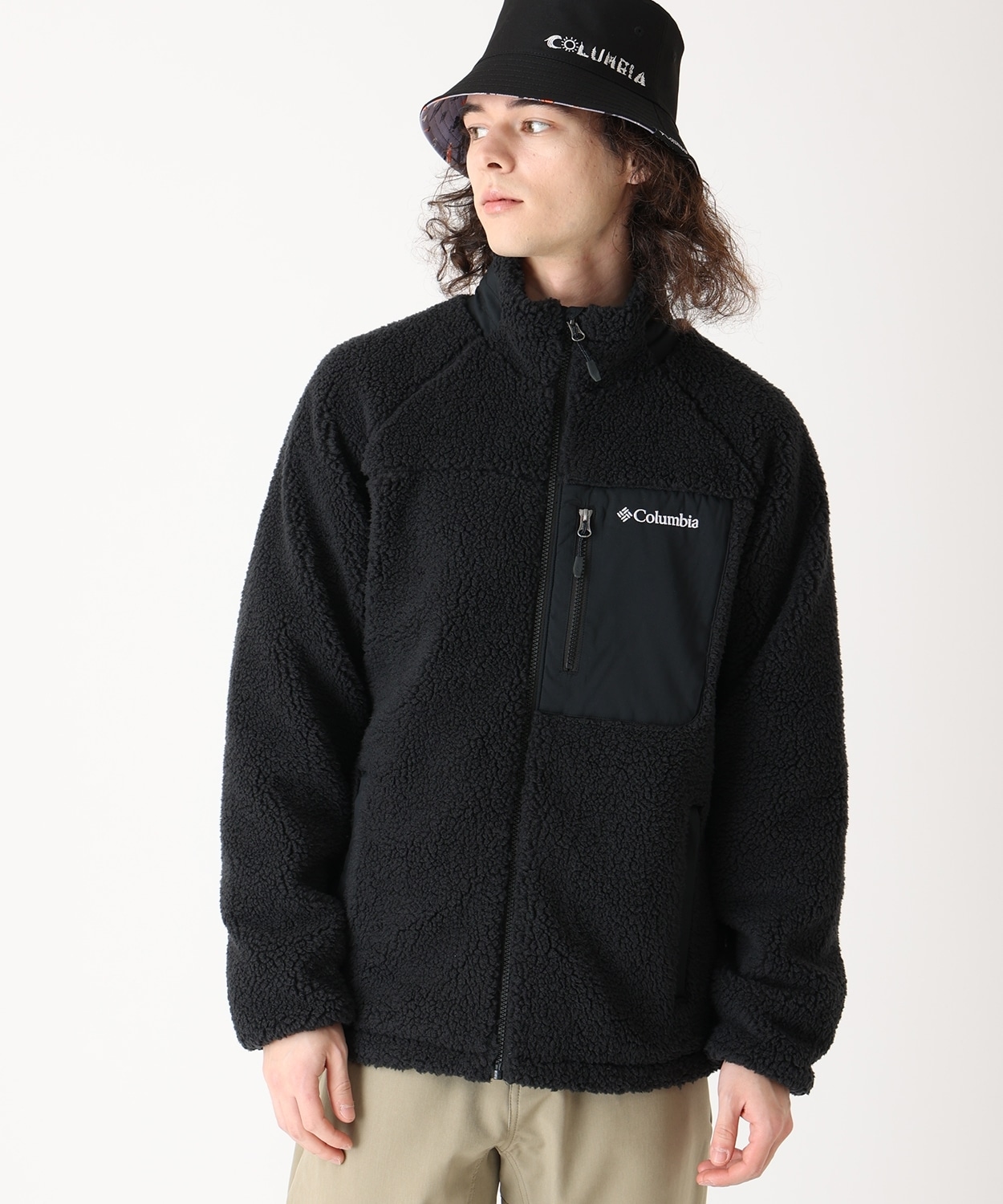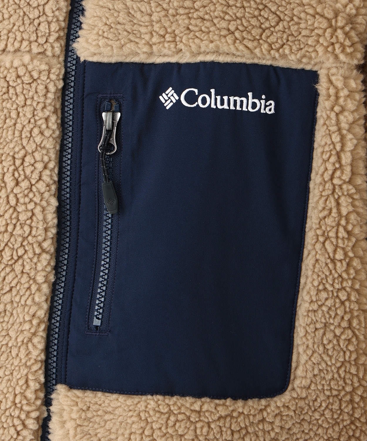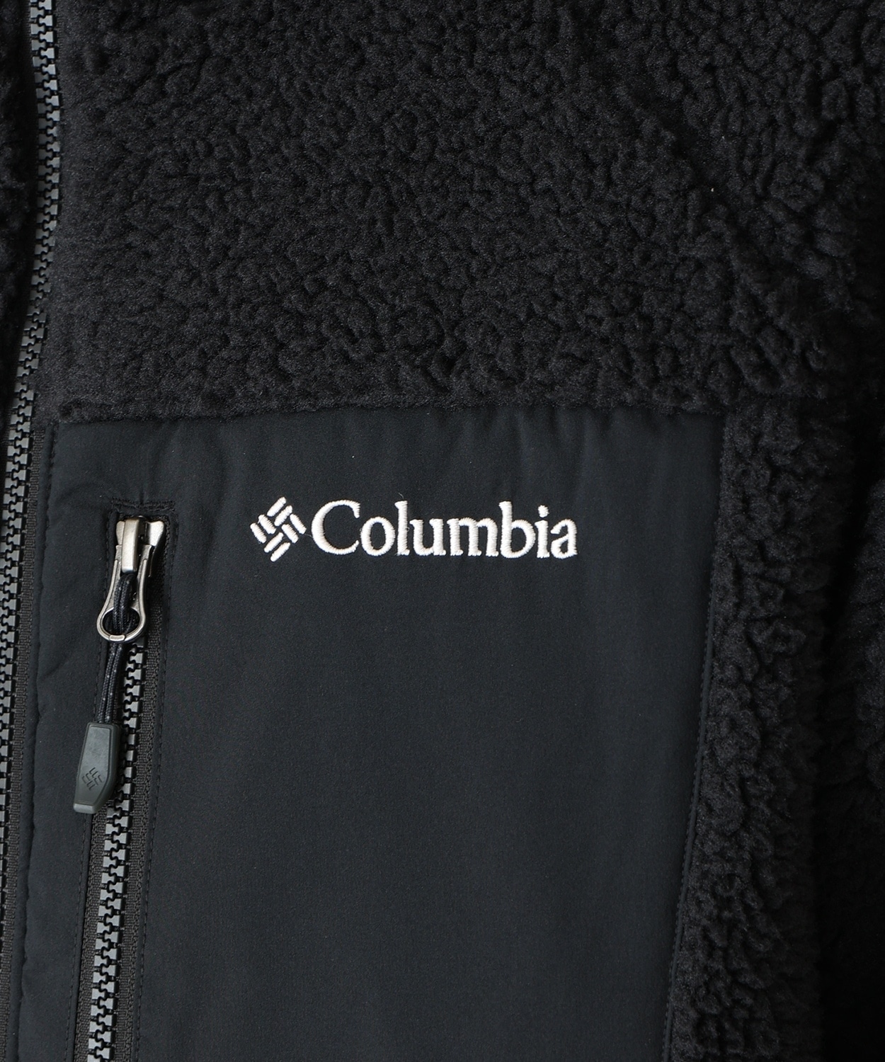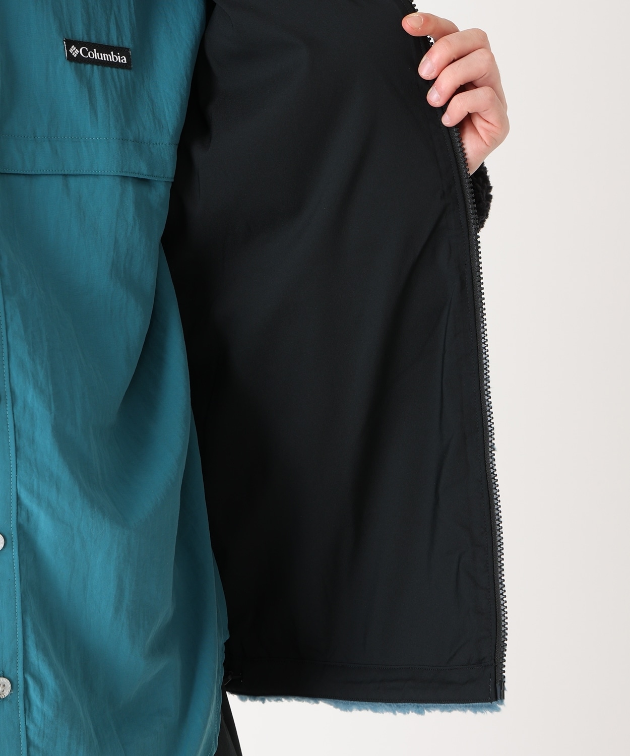 ソフトなボアフリース素材をベースに、部分的にナイロン素材切り替えを施したジャケット。