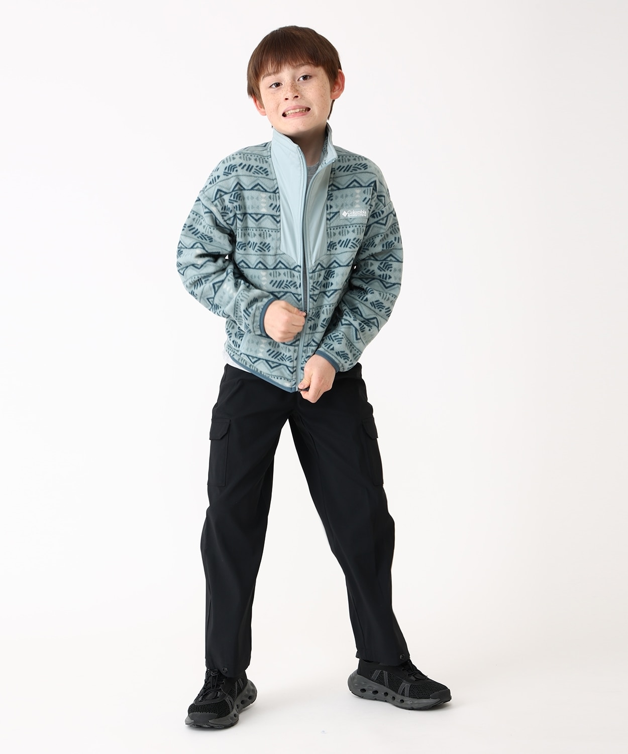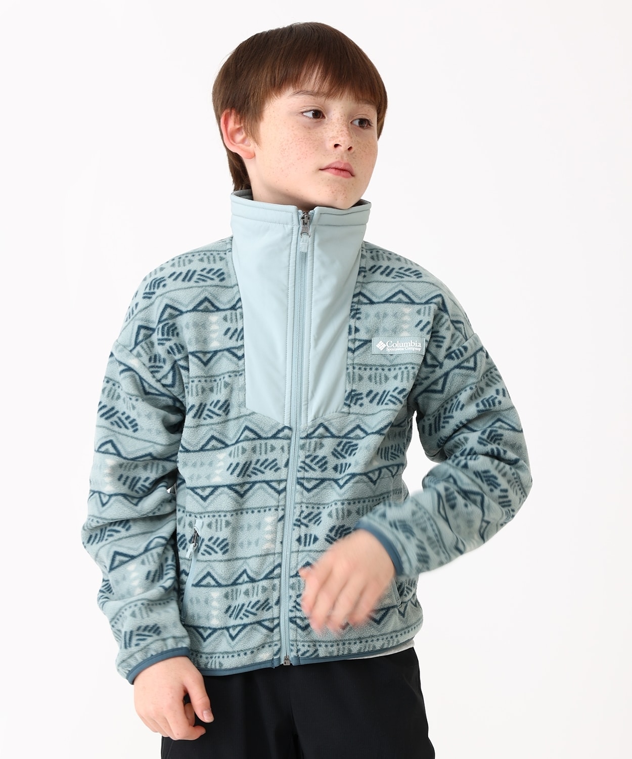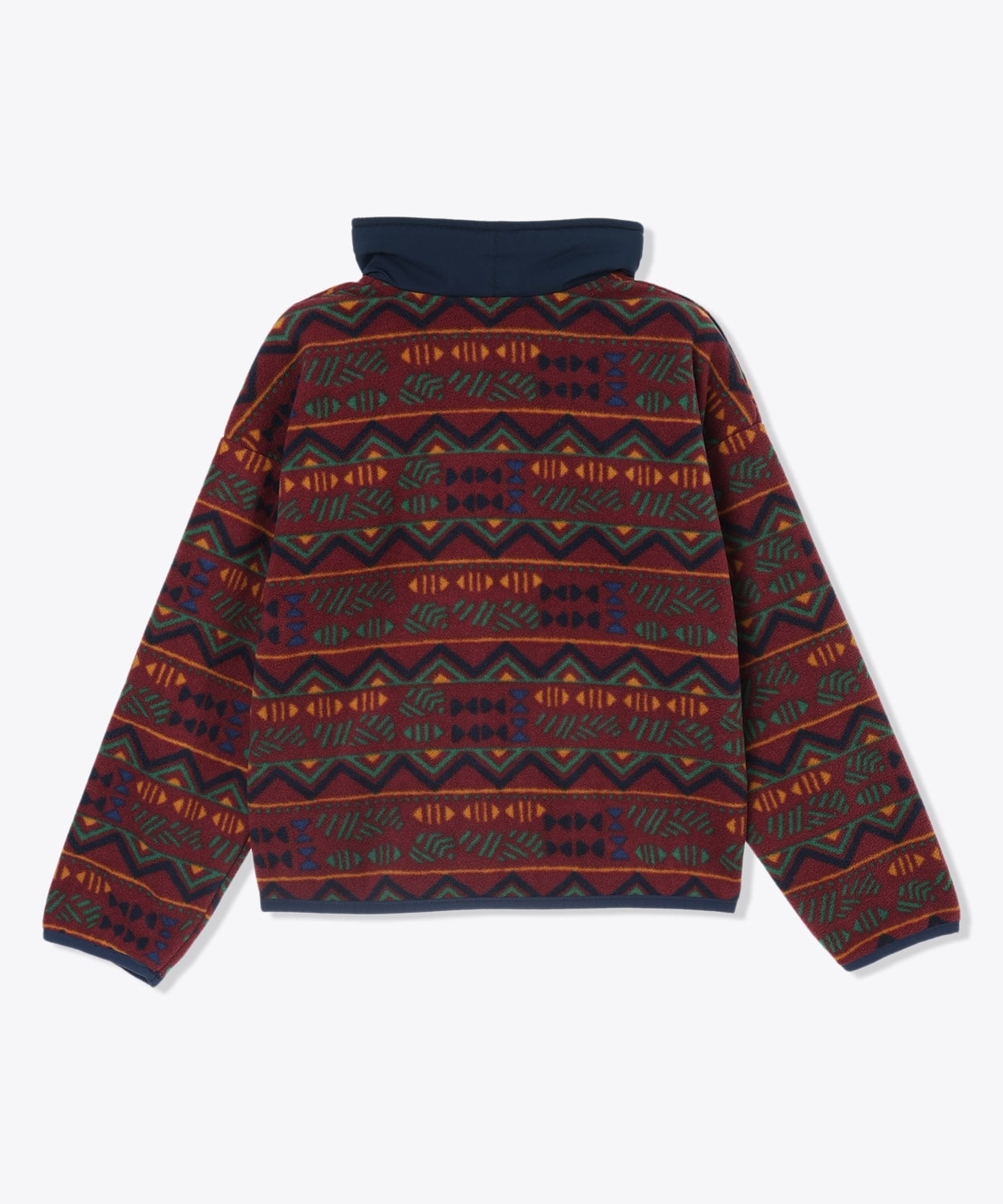 環境に配慮したリサイクルポリエステル100%を採用しており、滑らかな肌ざわりと適度な保温力で着心地も抜群。首元と前立て部分はウーブン生地をオーバーレイすることで耐久性を高め、袖・裾・襟元は程よいフィット感のあるバイティング仕様が冷気の侵入を防ぐなど、デザインと機能を両立したアイテムです。