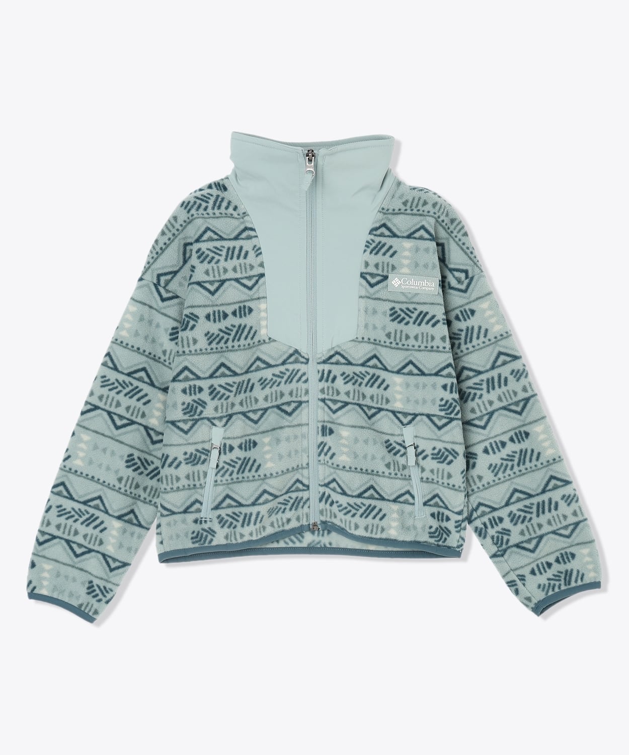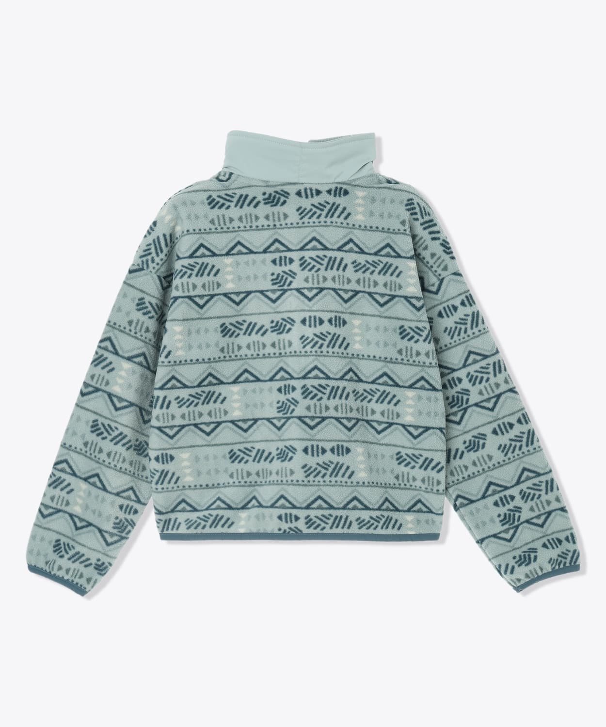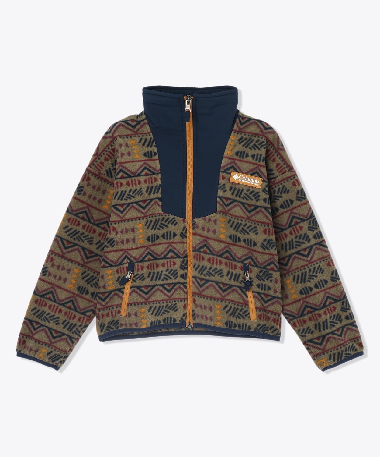 環境に配慮したリサイクルポリエステル100%を採用しており、滑らかな肌ざわりと適度な保温力で着心地も抜群。首元と前立て部分はウーブン生地をオーバーレイすることで耐久性を高め、袖・裾・襟元は程よいフィット感のあるバイティング仕様が冷気の侵入を防ぐなど、デザインと機能を両立したアイテムです。