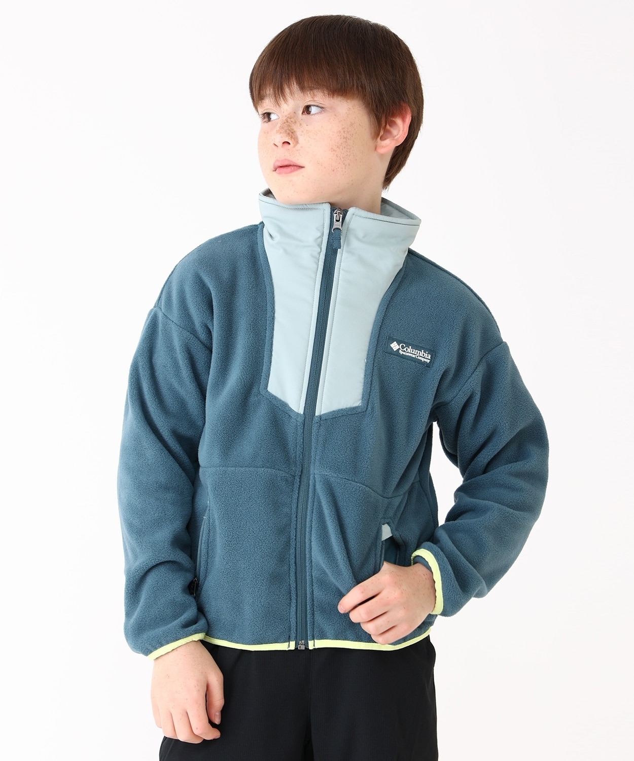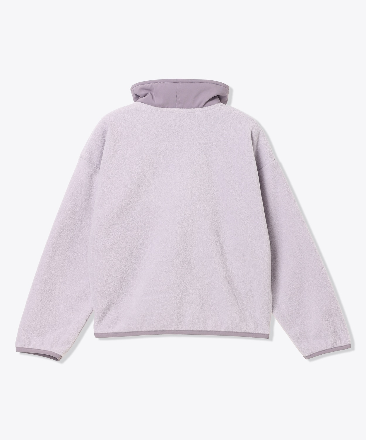 首元と前立部分は、布帛生地をオーバーレイすることで耐久性を高めるとともに、デザインにアクセントをプラス。適度な保温力とソフトな肌ざわりが特徴のリサイクルポリエステル100%を採用するなど、素材も厳選しました。