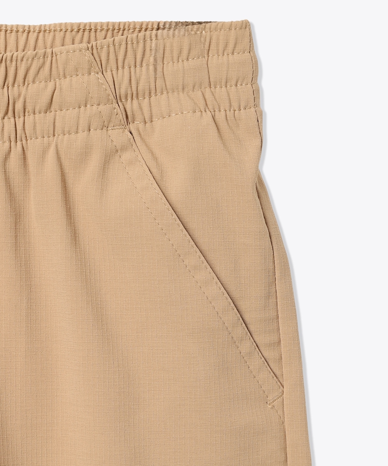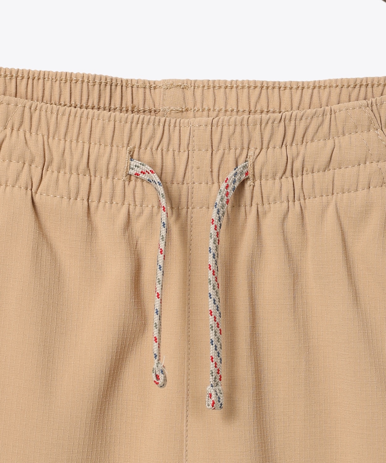 小雨程度の水を弾く、はっ水(撥水)機能を備え、ウエストはゴムとミックスコードで着脱も楽々。トレンド感のある程よくゆとりのあるシルエットながらも裾にはスナップボタンを備え、合わせるシューズや用途に応じて裾幅調整も可能。収納性に優れたカーゴポケットをはじめ、充実のポケットワークで、ハイキングを快適にするアイテムです。