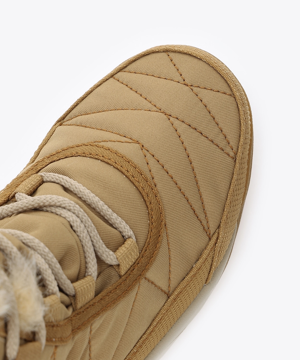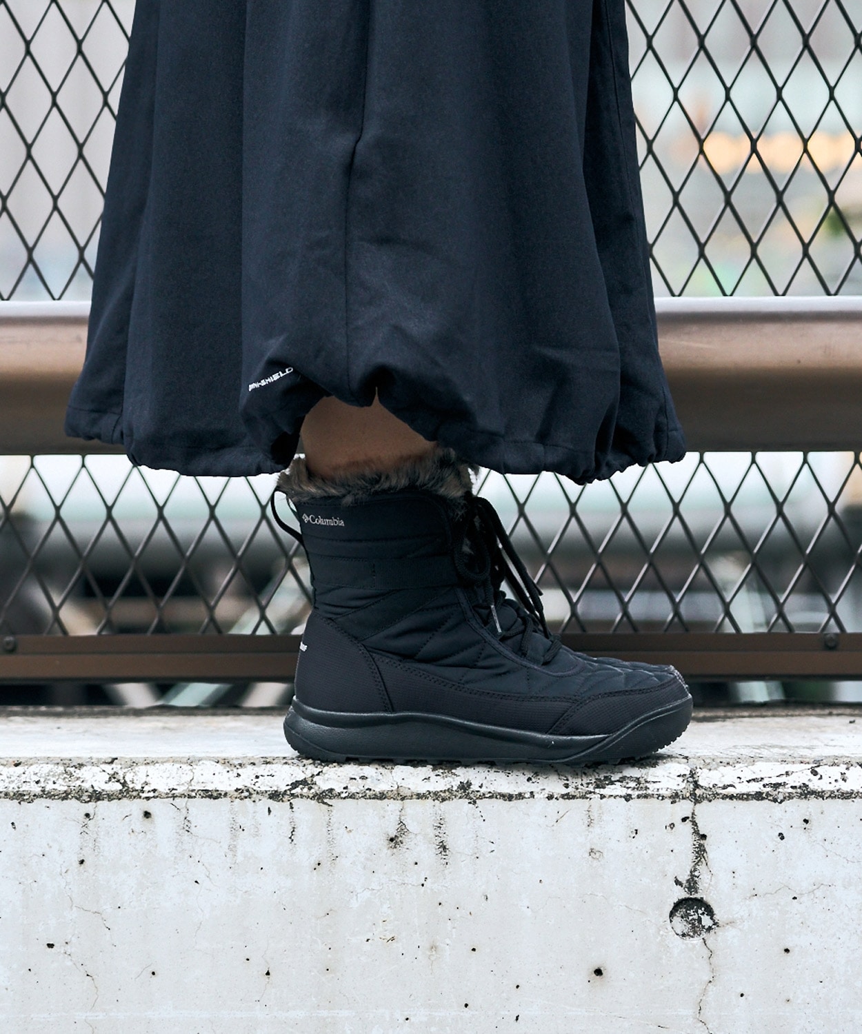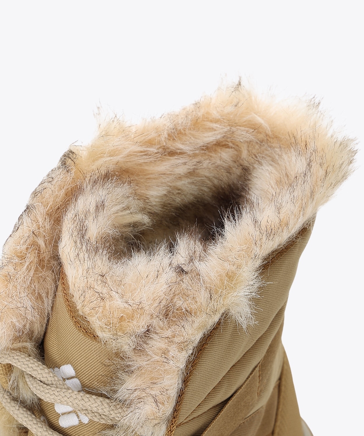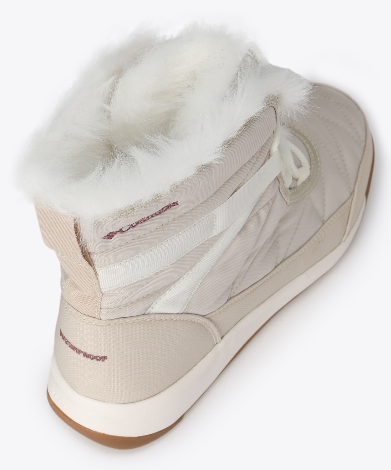 キルティング×ファーライナーと程よい厚みのソールデザインで、ウィンターらしいルックスに仕上げたショートタイプ。雨や雪などの侵入を防ぐ防水透湿機能と、寒い日でも暖かい履き心地をキープする熱反射保温機能に加えて、様々な路面で高いパフォーマンスを発揮するアウトソールと多機能を装備。ゆったりと履きたい方や幅広な方にもおすすめのワイドフィットを採用しました。
