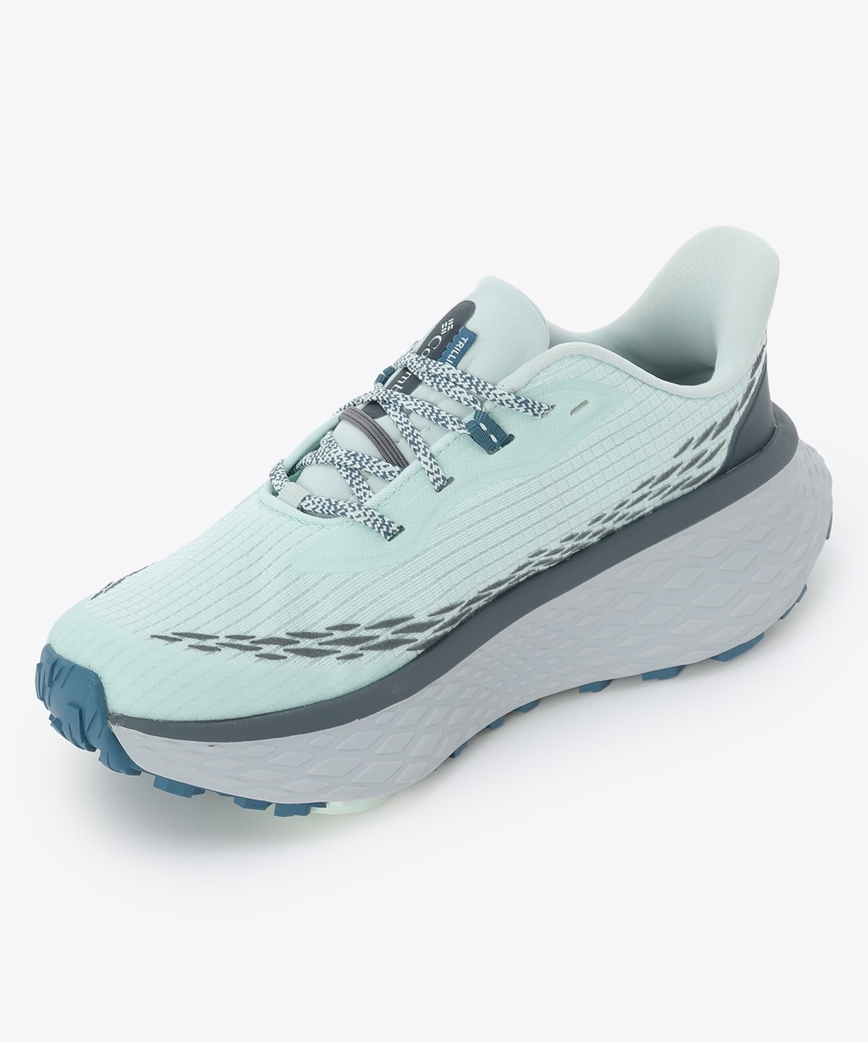 エネルギーリターンで得られる反発性、適応性の高いクッション性、強化された安定性、様々な地形でのトラクションを特徴とするフットウェアシステム。
