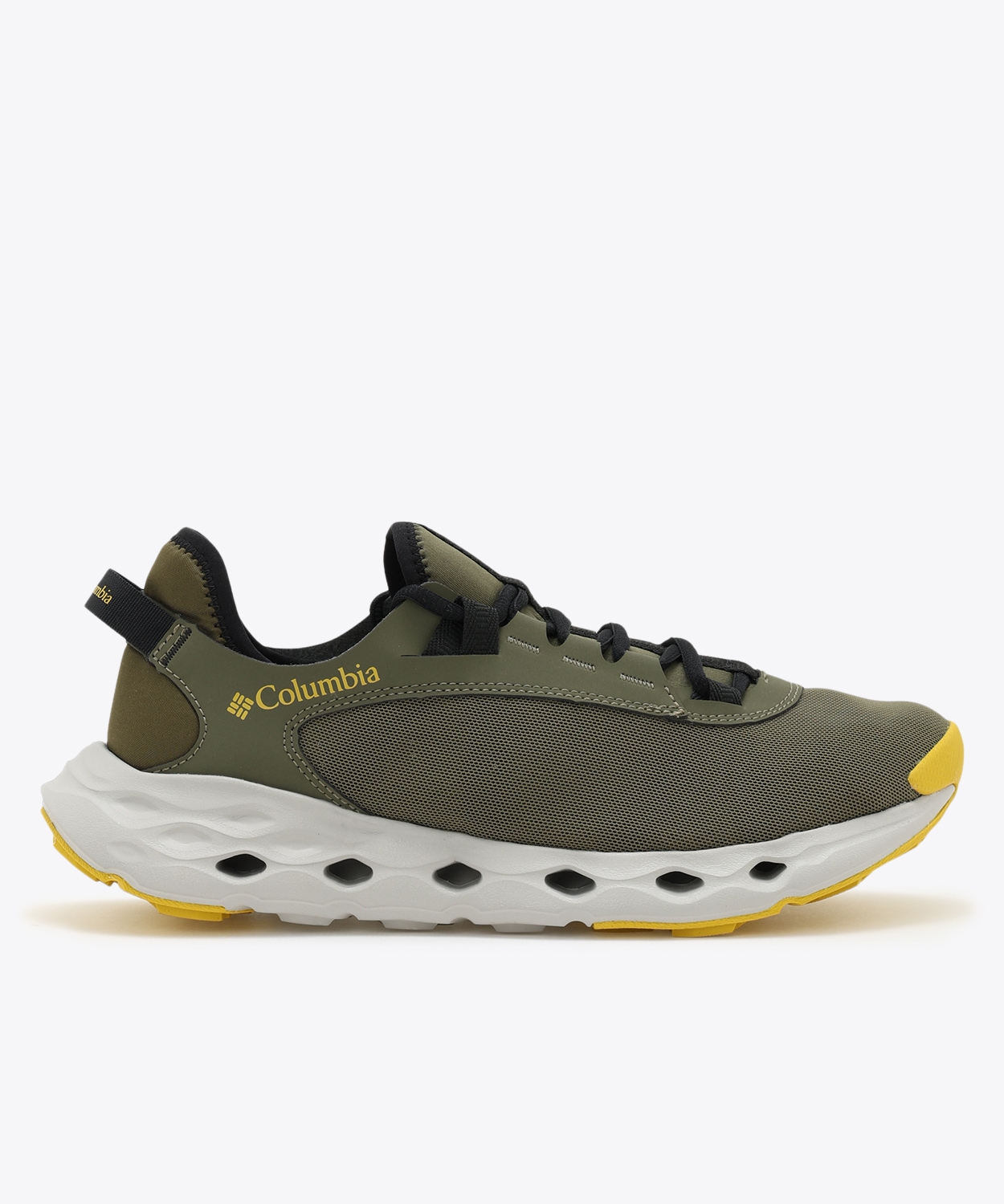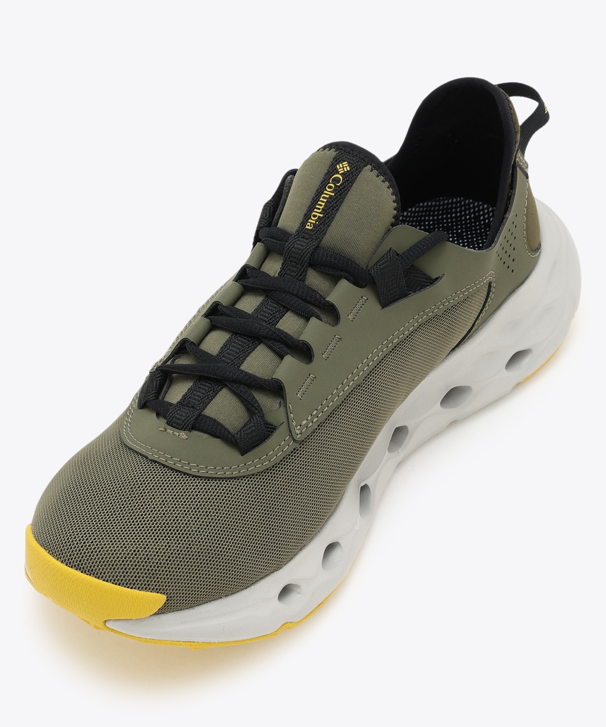 ソールの側面に設けた、複数の排水孔(ドレインホール)が、シューズ内の水を素早く排出するため、水辺でも快適な履き心地を実現。独自のラバーアウトソールデザインが高いトラクションを発揮し、ミッドソールとアウトソールが一体成型された、グランドコンタクトEVAフォーム「オムニグリップライト」を搭載することにより、耐久性と軽量化を両立。アウトソールに負担のかからない箇所は、底面ラバーの面積を極力減らすことで、防滑性を保ちながら軽量性とクッション性の向上を実現しました。