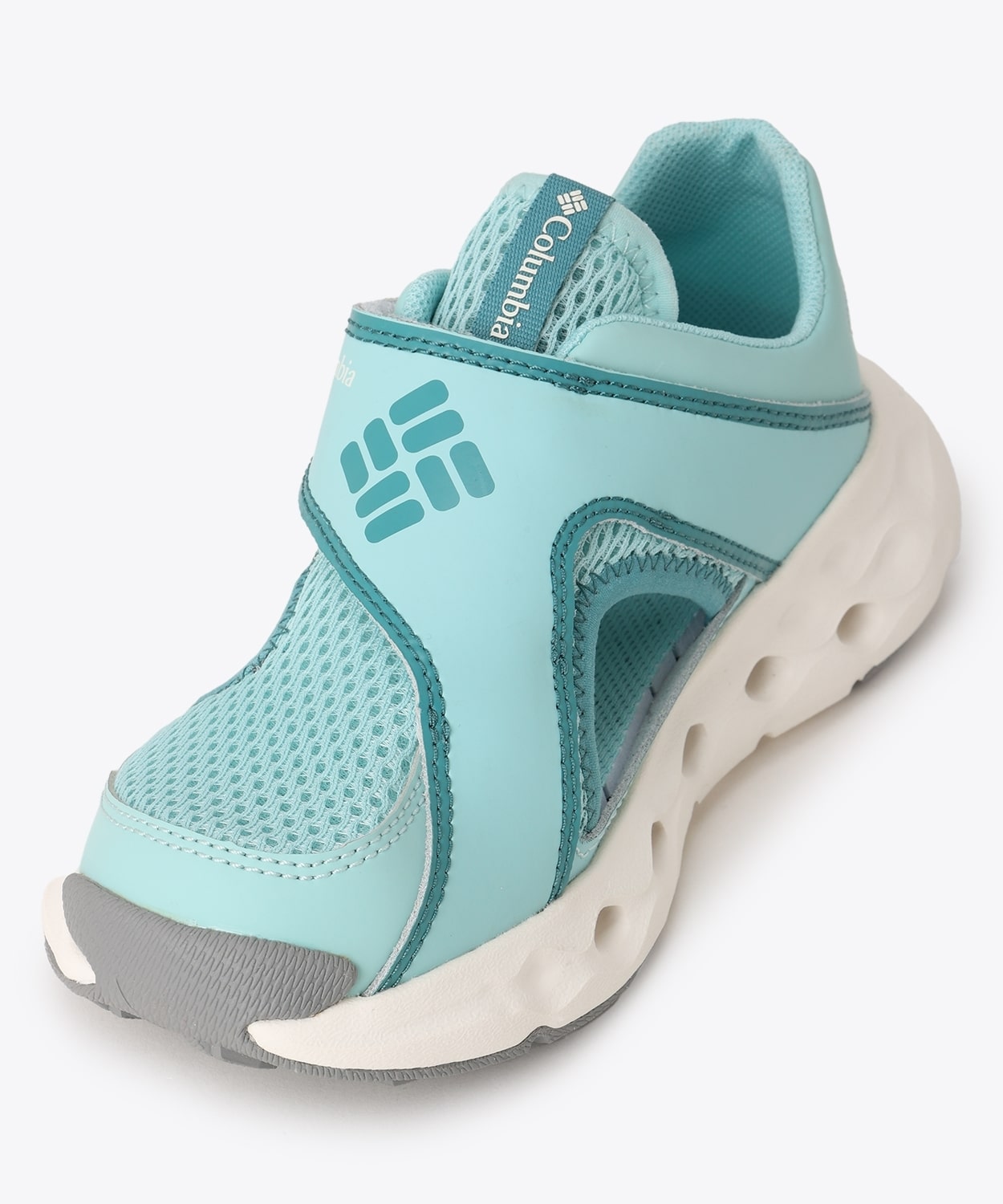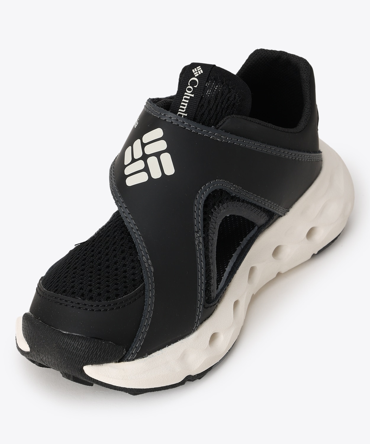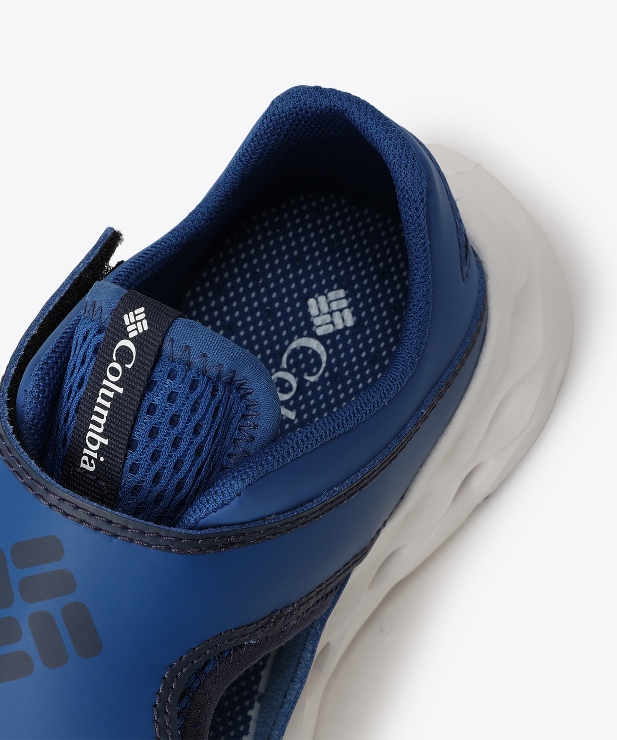 ソールの側面に施した複数の排水孔(ドレインホール)は、シューズ内の水を素早く排出するため、水辺でも快適なはき心地を提供します。さらに、独自のラバーアウトソールデザインが高いトラクションを発揮し、ミッドソールとアウトソールが一体成型された、グランドコンタクトEVAフォーム「オムニグリップライト」を採用することにより、耐久性と軽量化を両立。アウトソールに負担のかからない箇所は、底面ラバーの面積を極力減らすことにより、防滑性を保ちながら軽量性とクッション性の向上を実現しました。