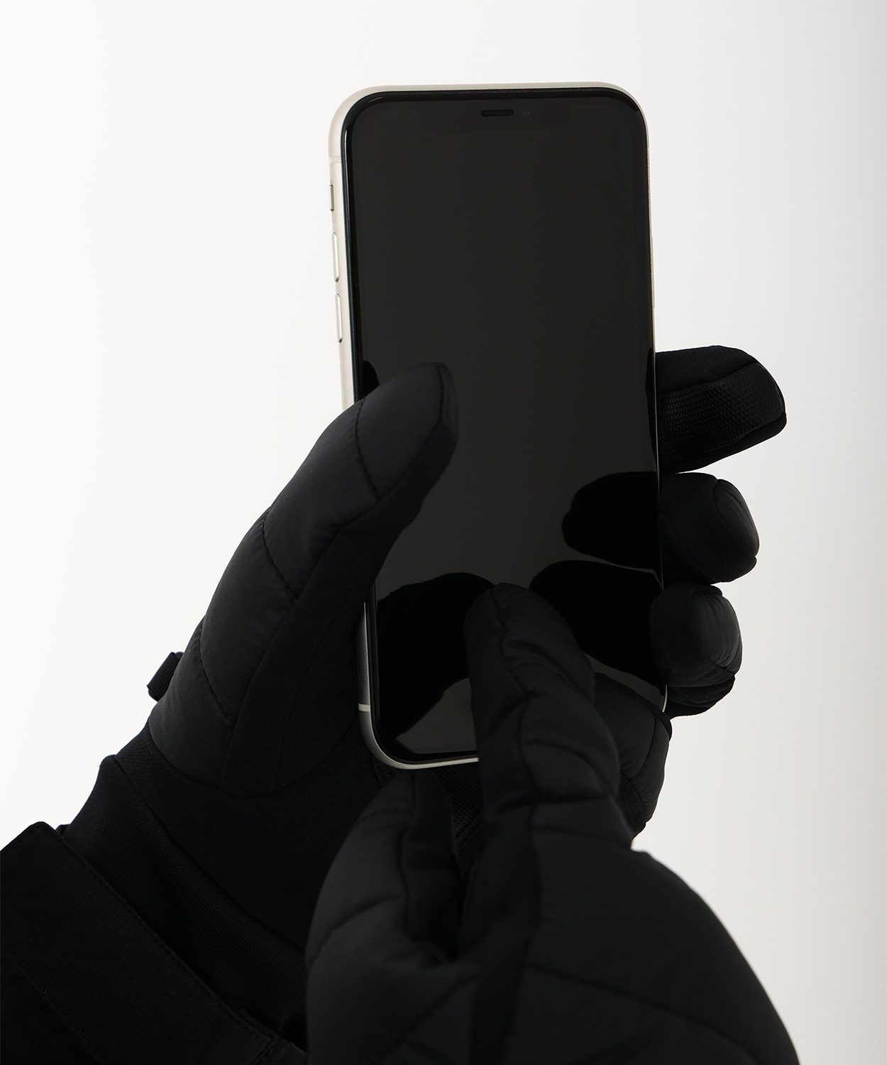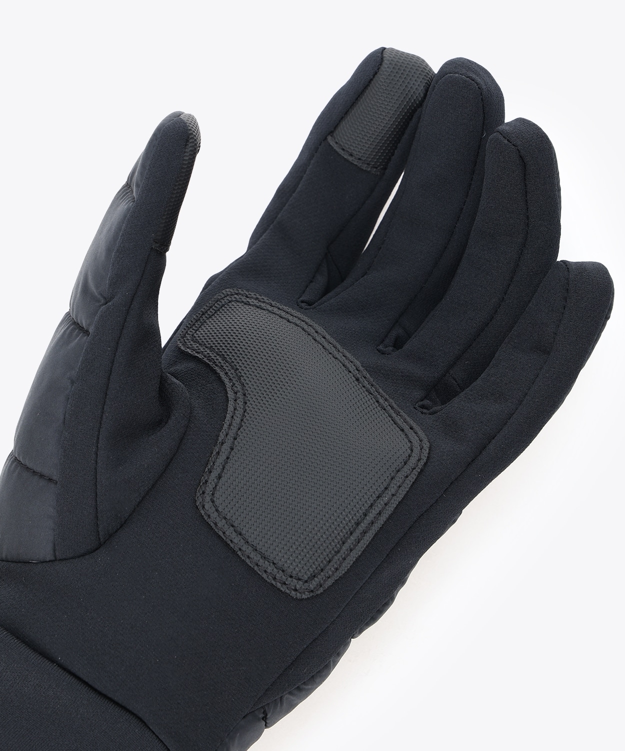 甲側:ポリエステル100% / 掌側:ポリエステル91% , ポリウレタン9% / パーム部・指先:合成皮革 / 裏地:ポリエステル100% / 中綿:ポリエステル100%