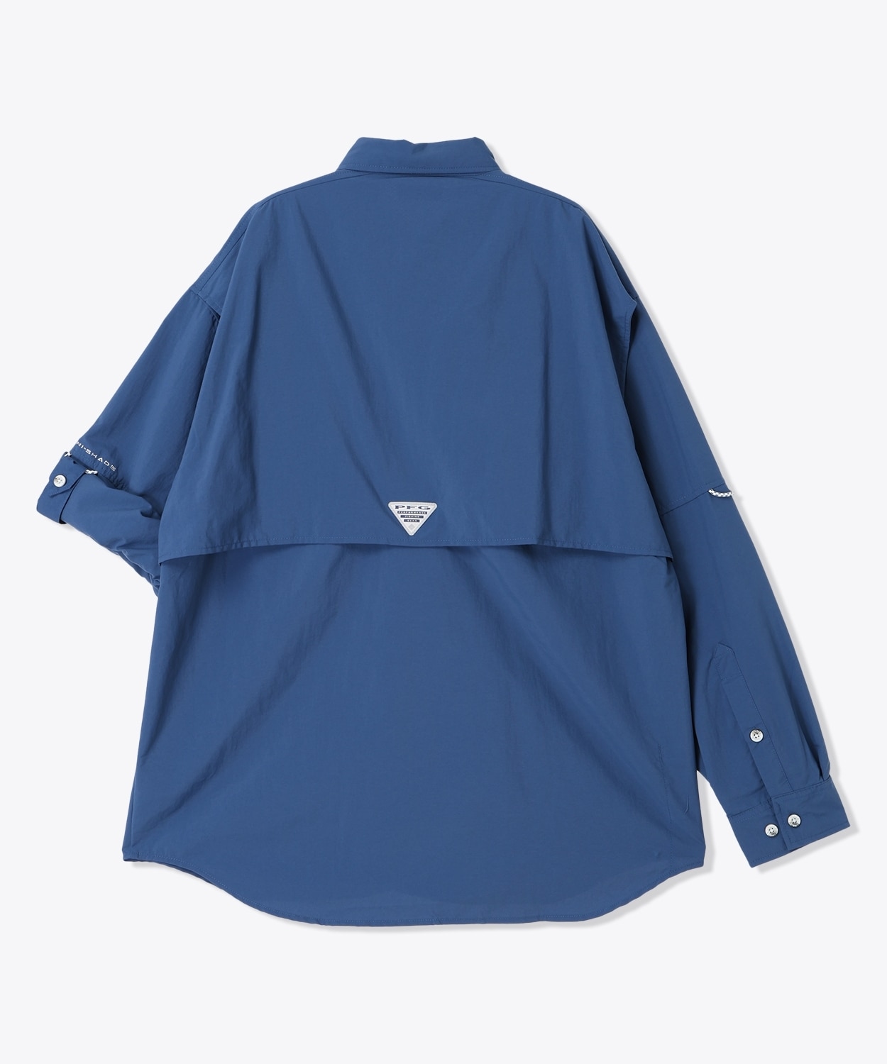 コットンライクのナチュラルな質感と速乾性を併せ持つナイロン素材を採用し、UV-AとUV-Bの紫外線からしっかりと肌を守るサンプロテクション機能に加えて、背面のベンチレーション機能を装備するなど、夏のフィッシングも安心。クラシカルでゆったりとしたサイズ感は街着としても合わせやすく、女性にもフィットするXSサイズから取り揃えています。