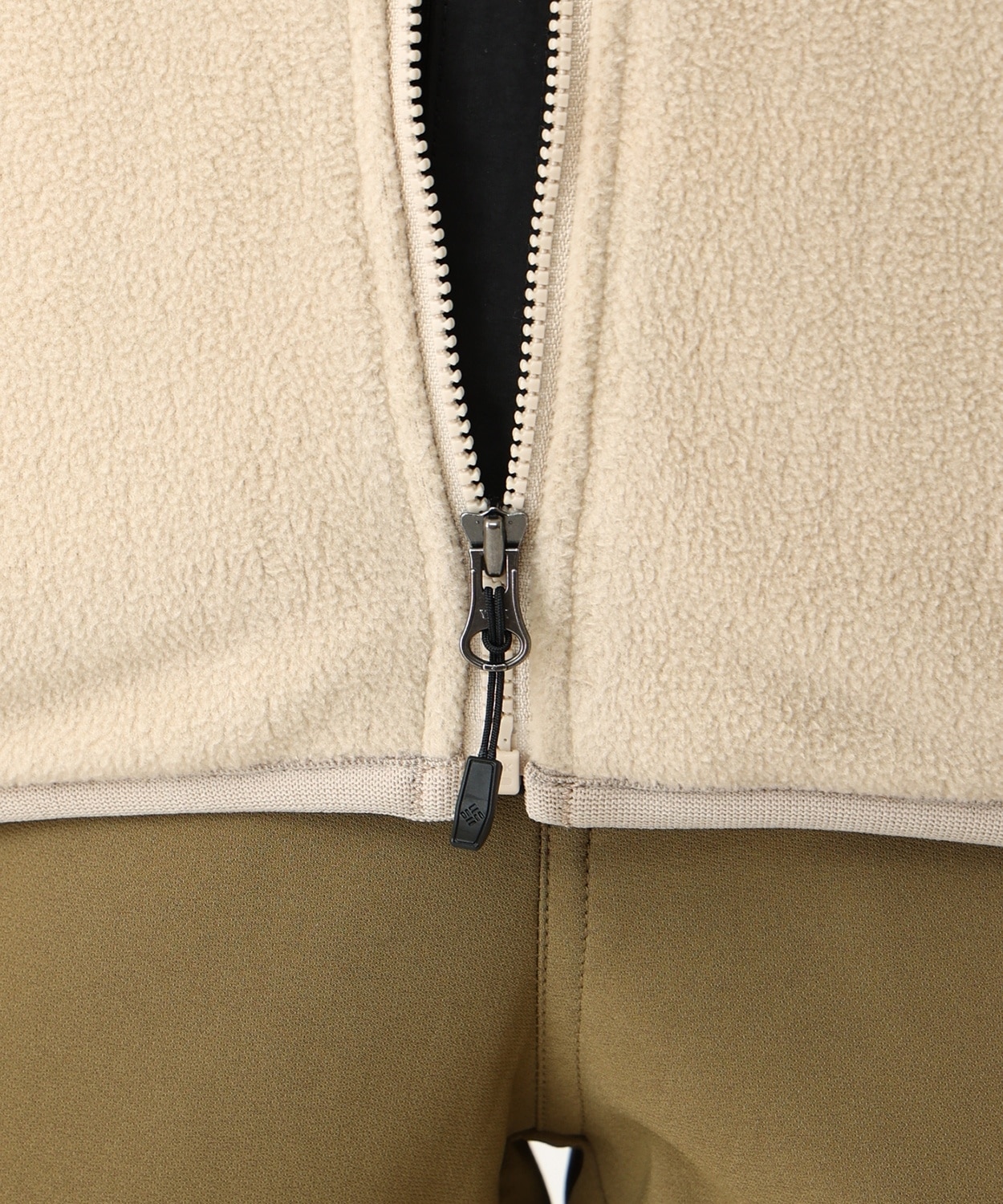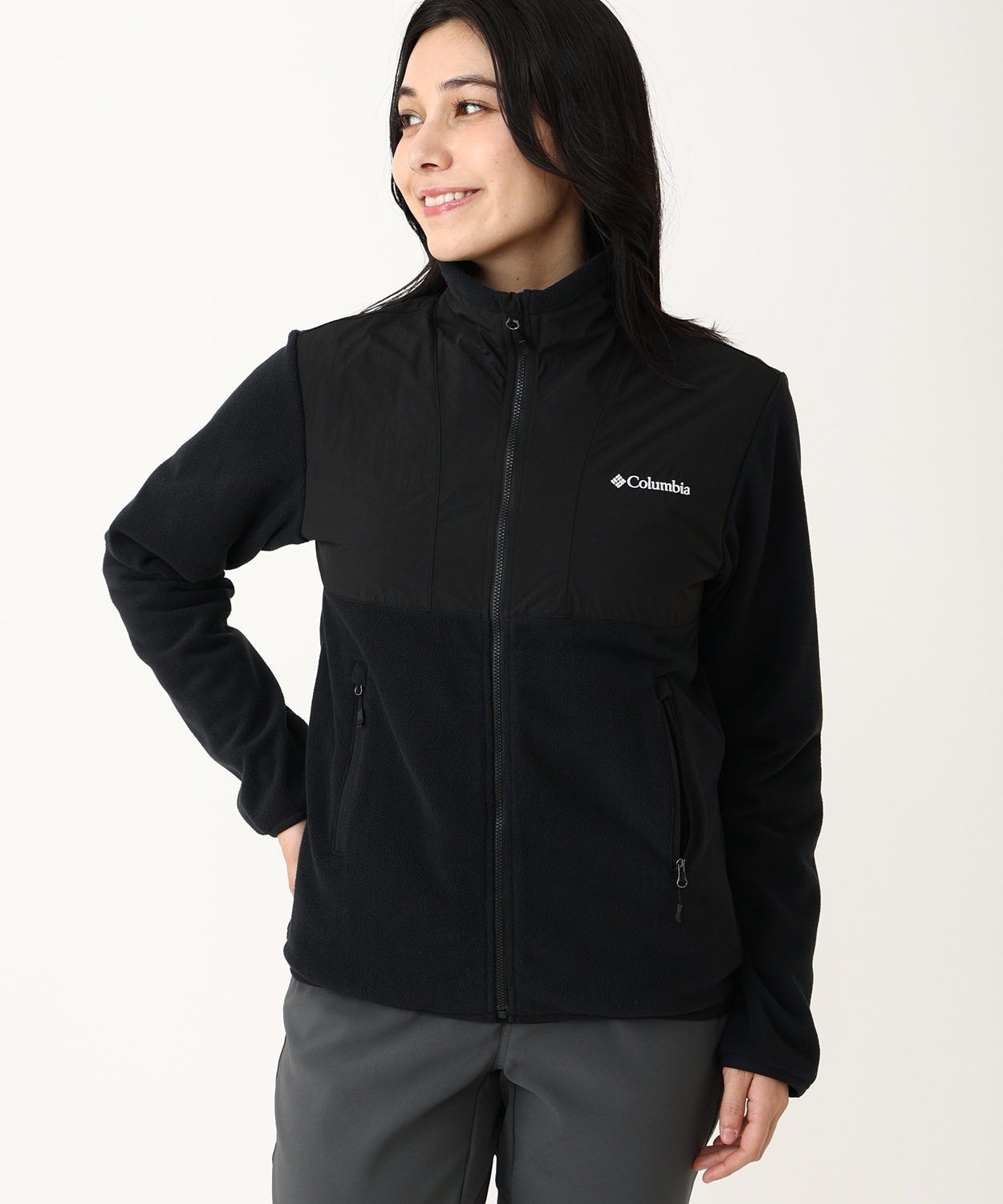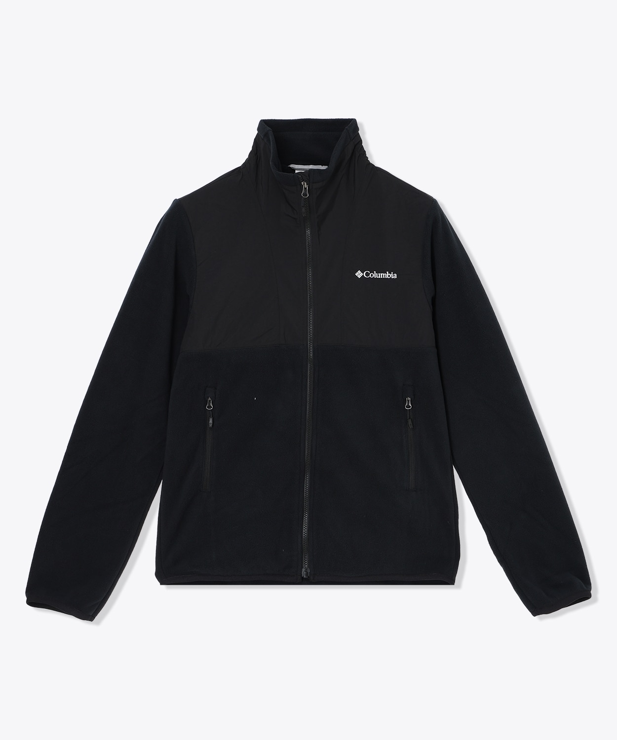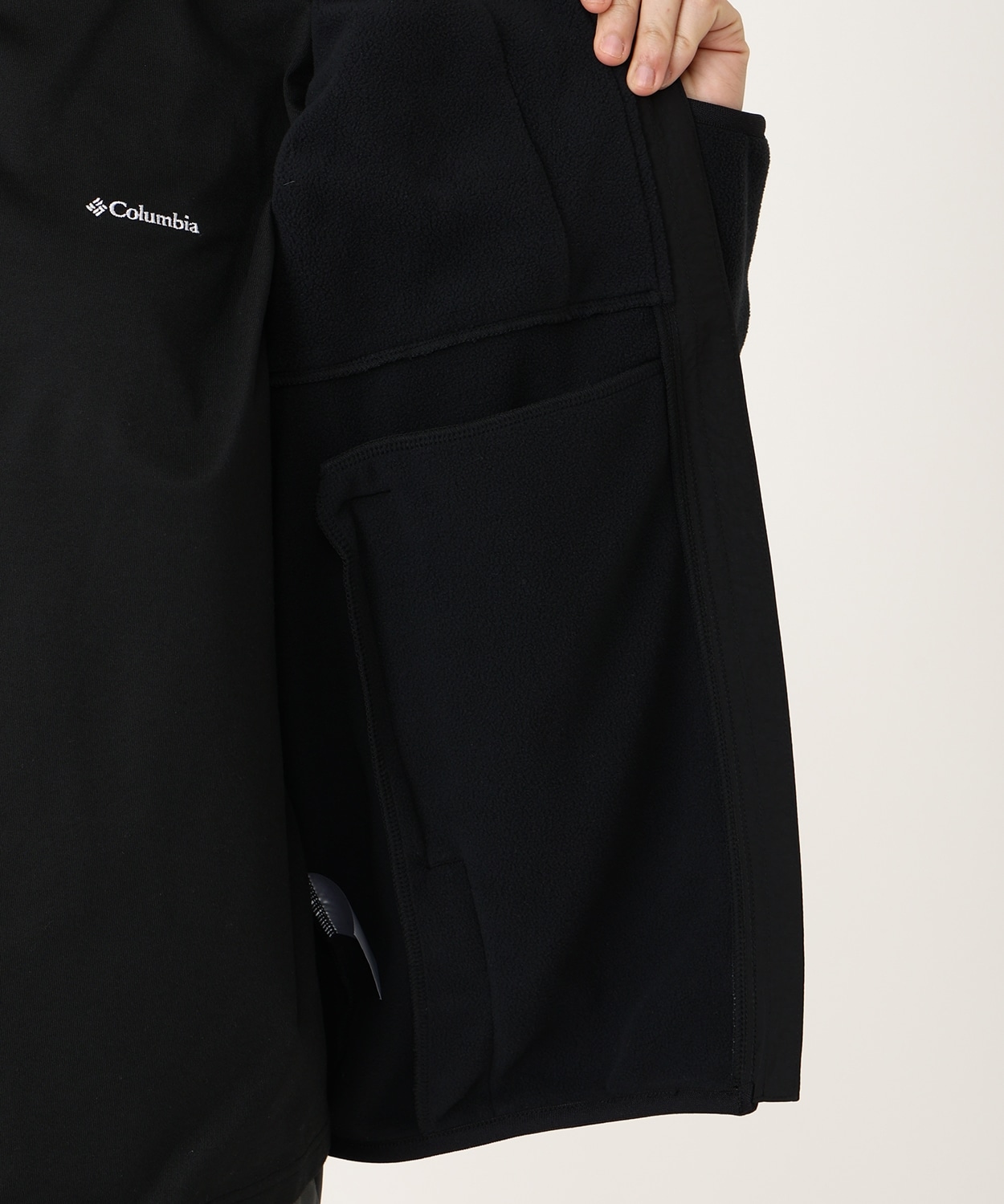 コロンビアの特徴でもある、立体的な前襟パターンのビブネックラインが着用時の快適性を高め、胸元から首元にかけては、はっ水(撥水)加工のウーブン素材をオーバーレイすることで、ザック使用時の耐久性にも考慮。レイヤリングしやすいフィット感で、ロングシーズンに対応できる一着です。