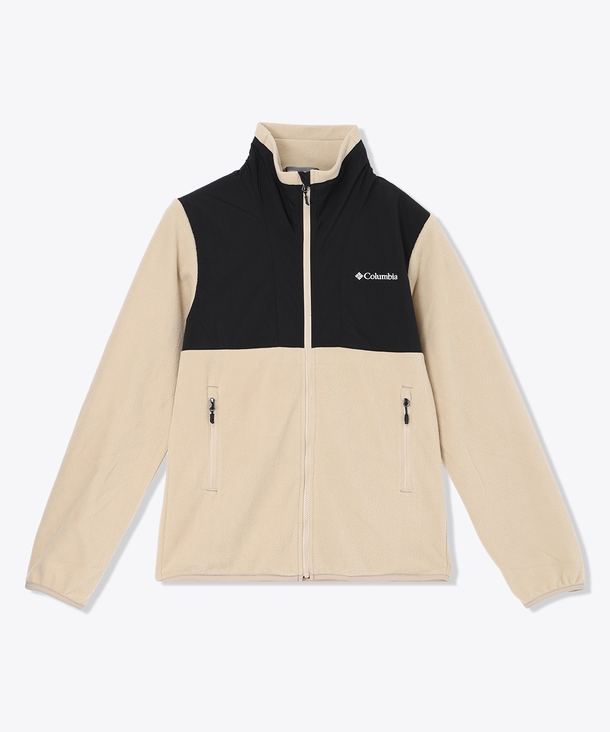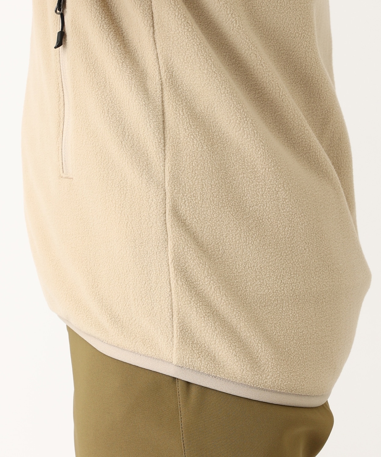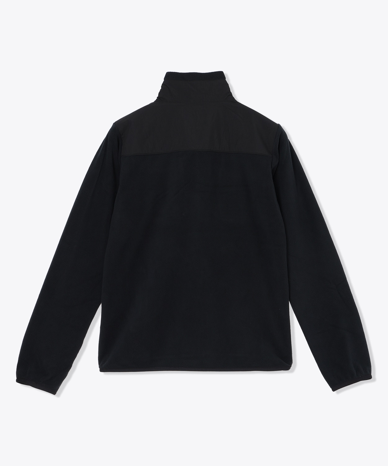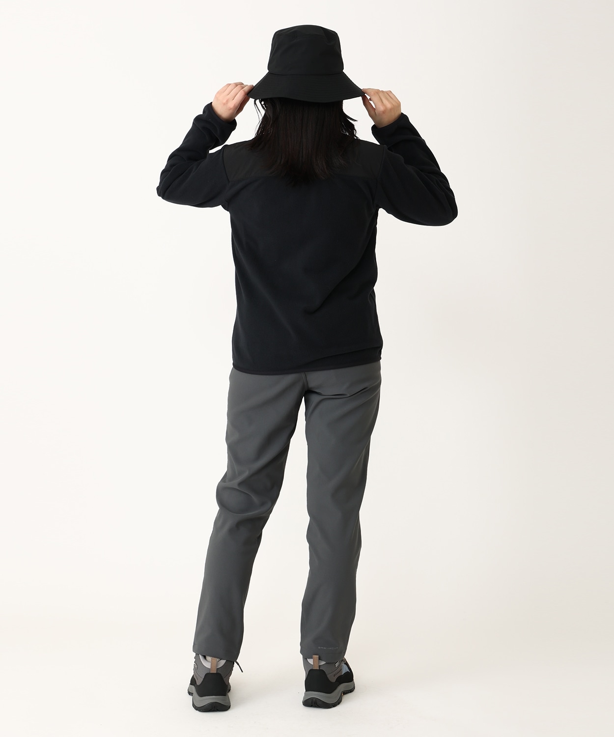 コロンビアの特徴でもある、立体的な前襟パターンのビブネックラインが着用時の快適性を高め、胸元から首元にかけては、はっ水(撥水)加工のウーブン素材をオーバーレイすることで、ザック使用時の耐久性にも考慮。レイヤリングしやすいフィット感で、ロングシーズンに対応できる一着です。