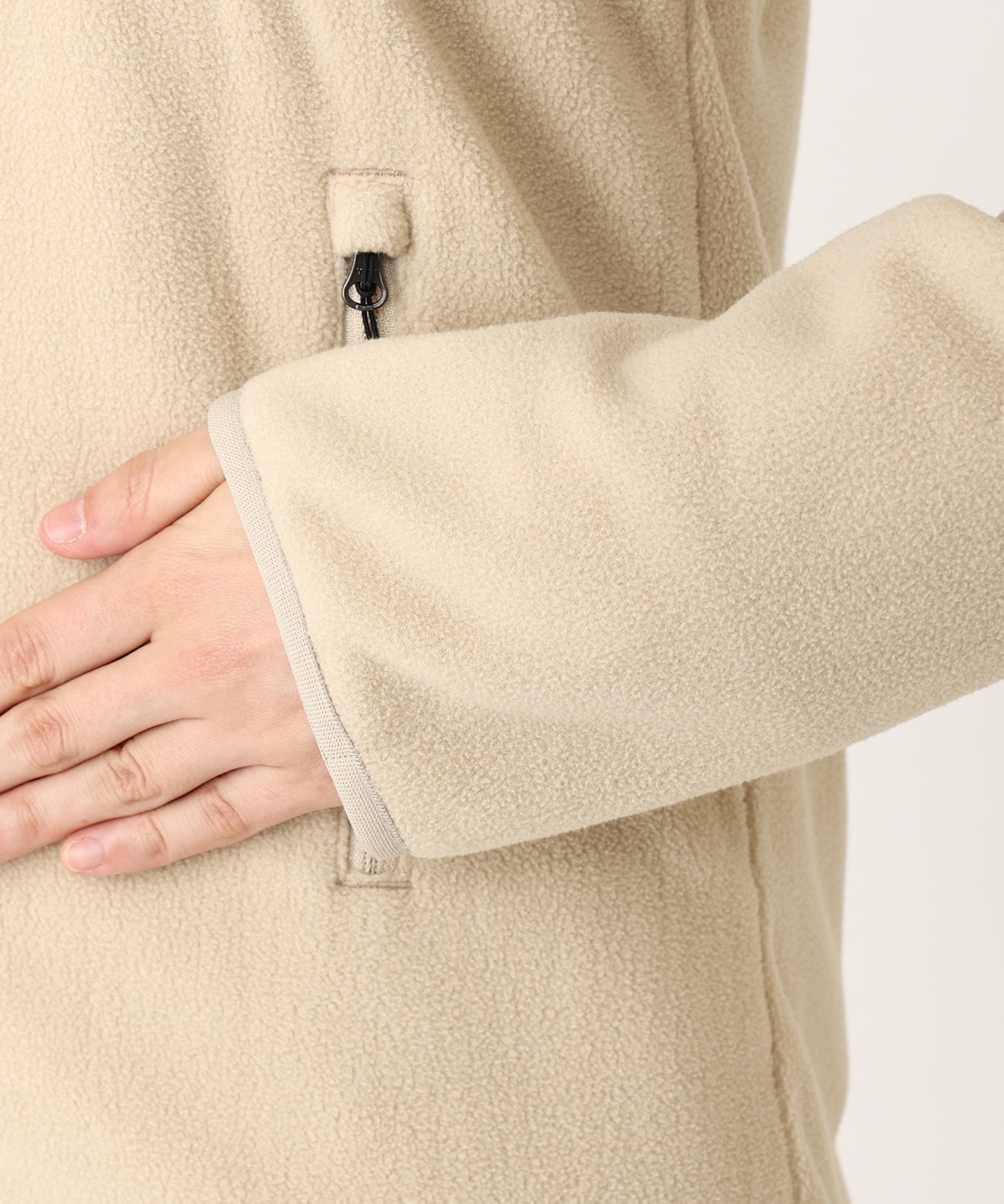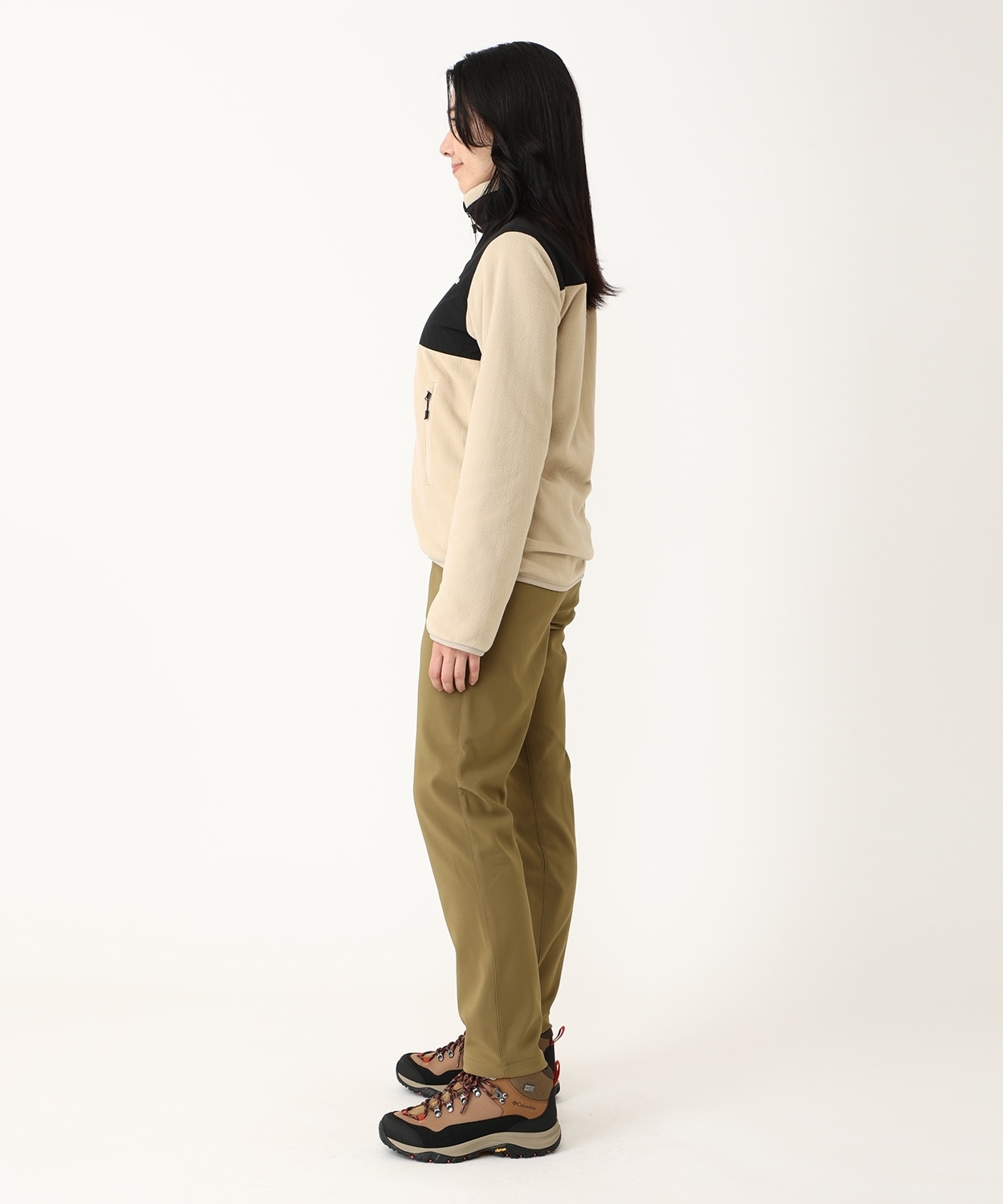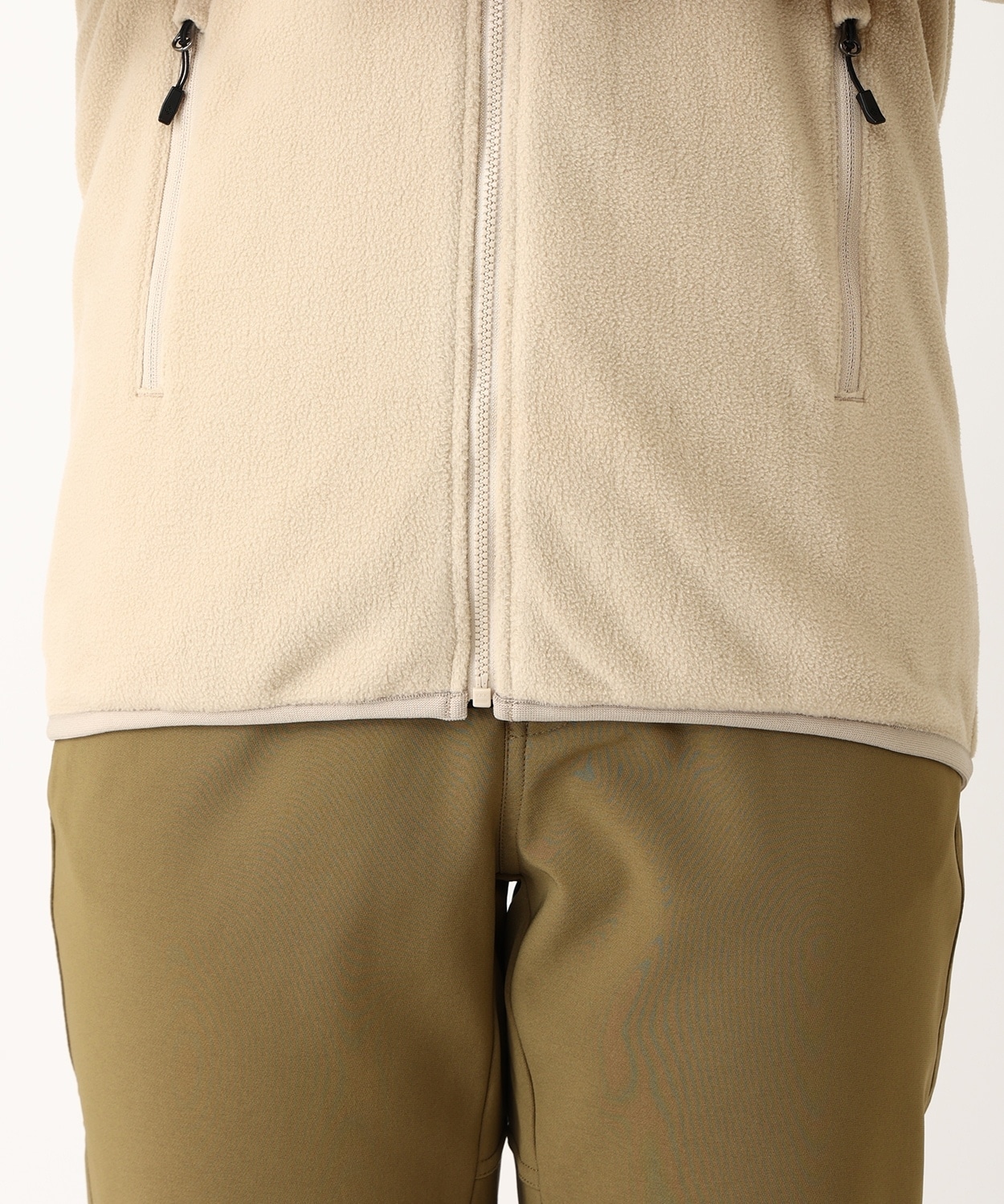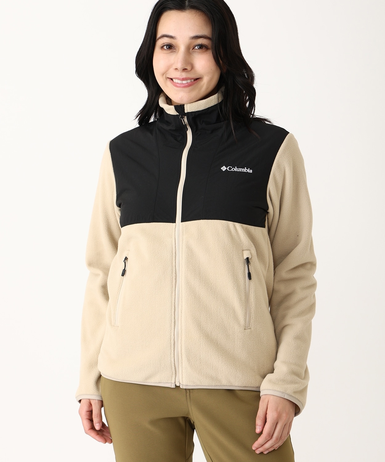コロンビアの特徴でもある、立体的な前襟パターンのビブネックラインが着用時の快適性を高め、胸元から首元にかけては、はっ水(撥水)加工のウーブン素材をオーバーレイすることで、ザック使用時の耐久性にも考慮。レイヤリングしやすいフィット感で、ロングシーズンに対応できる一着です。