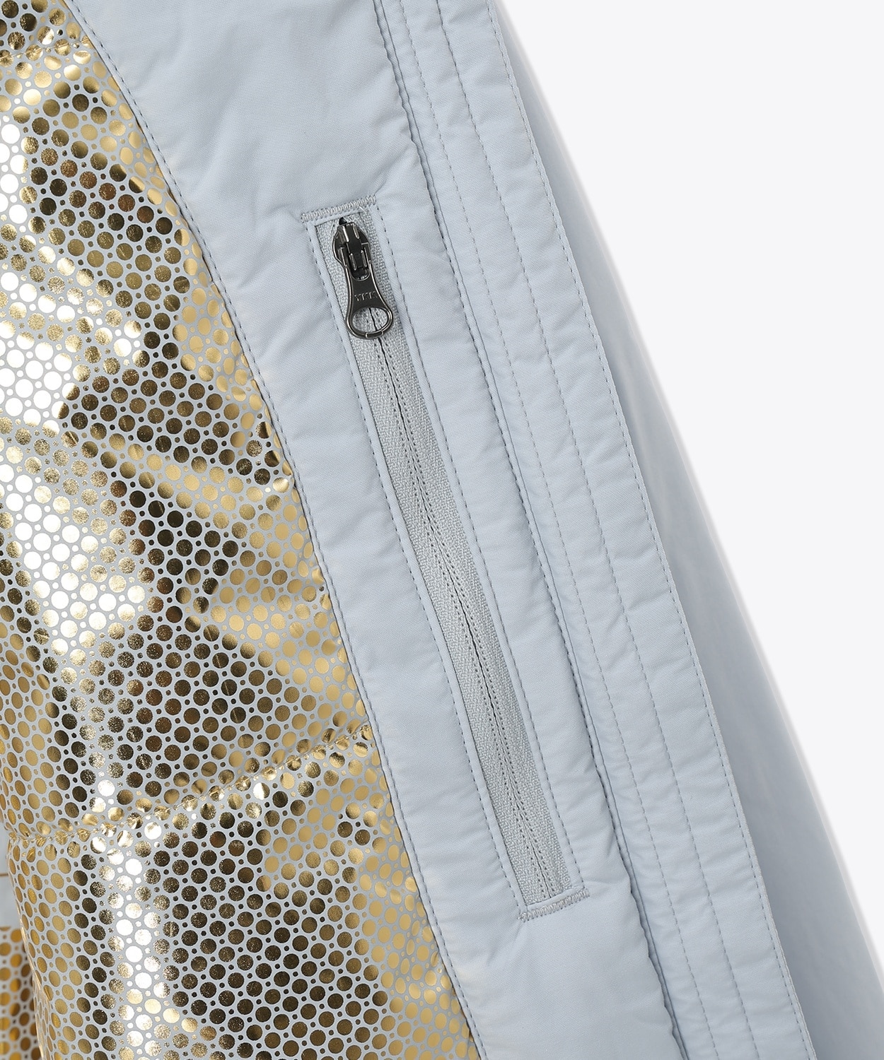 表:コットンタッチナイロンウーブン(ナイロン100%) 裏:オムニヒートリフレクティブインフィニティ(ポリエステル100%) 中わた:オムニヒート80g(リサイクルポリエステル50%、ポリエステル50%)