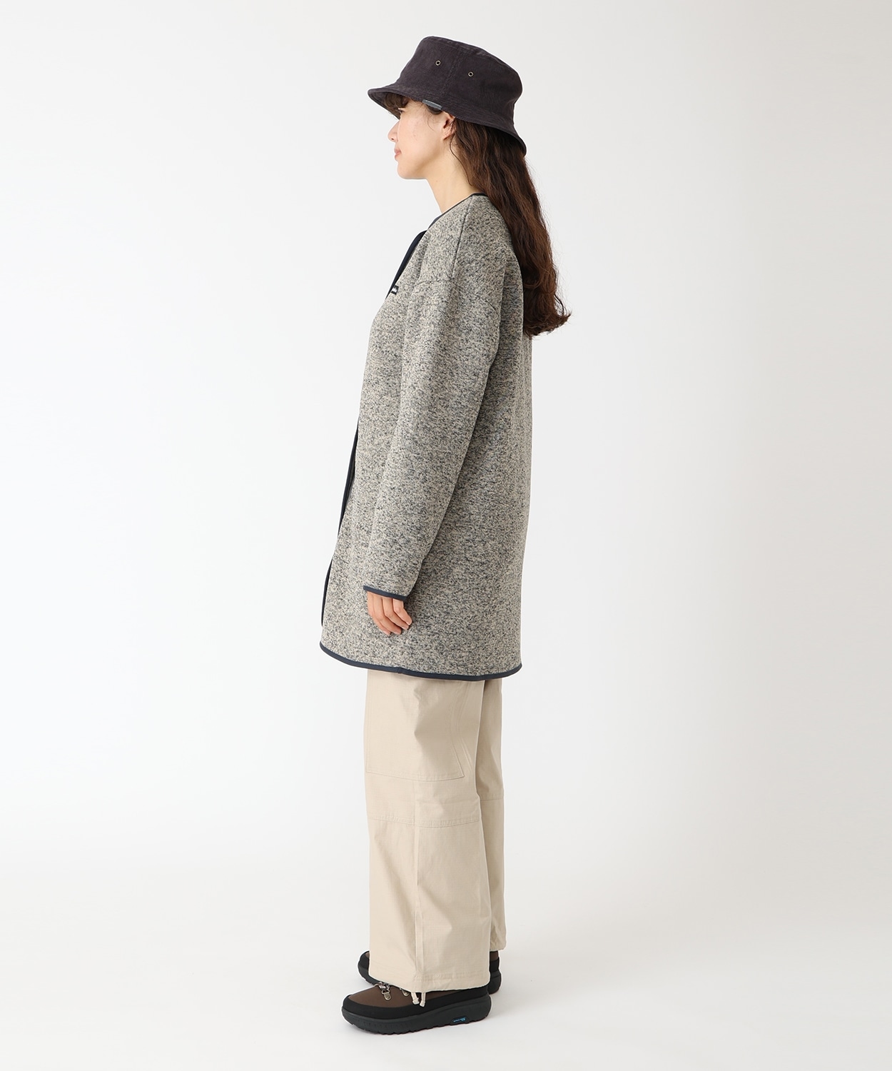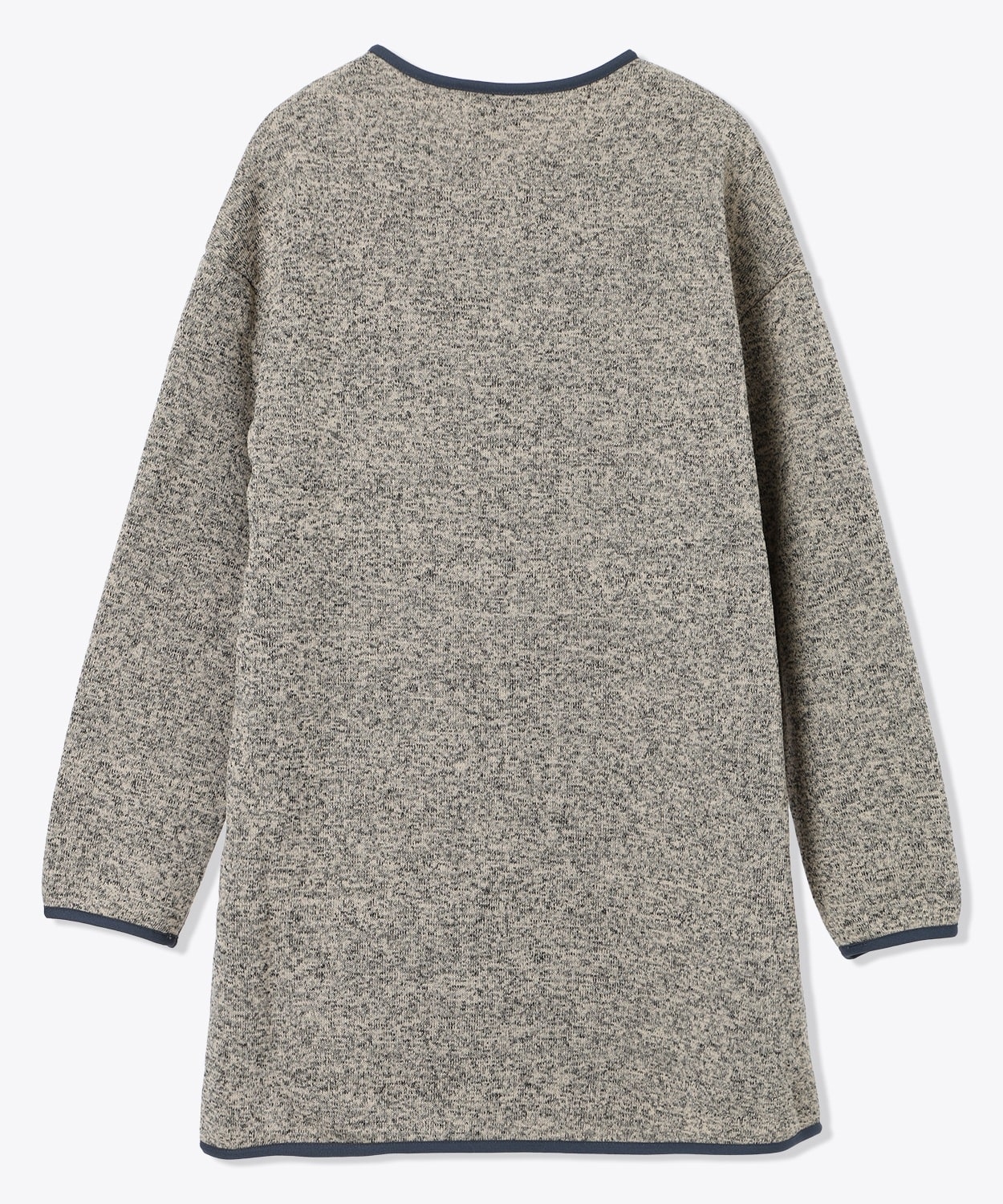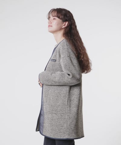 裏面はふっくらと柔らかい起毛素材で手触りも良く、今シーズンは首元のデザインを柔らかな印象のクルーネックにアップデート。腰回りも暖かく包み込むロング丈は、肌寒くなる秋口のライトアウターから、真冬はアウターとのレイヤリングを楽しむなど、ロングシーズンで着こなしの幅が広がります。