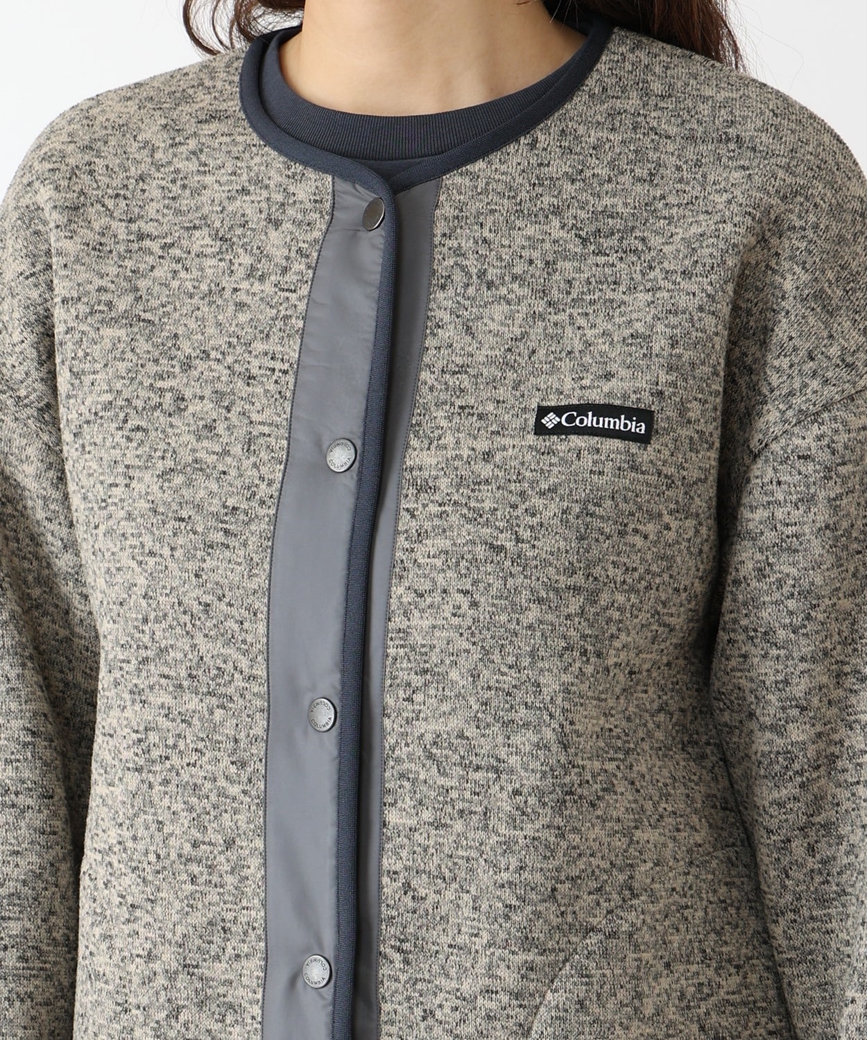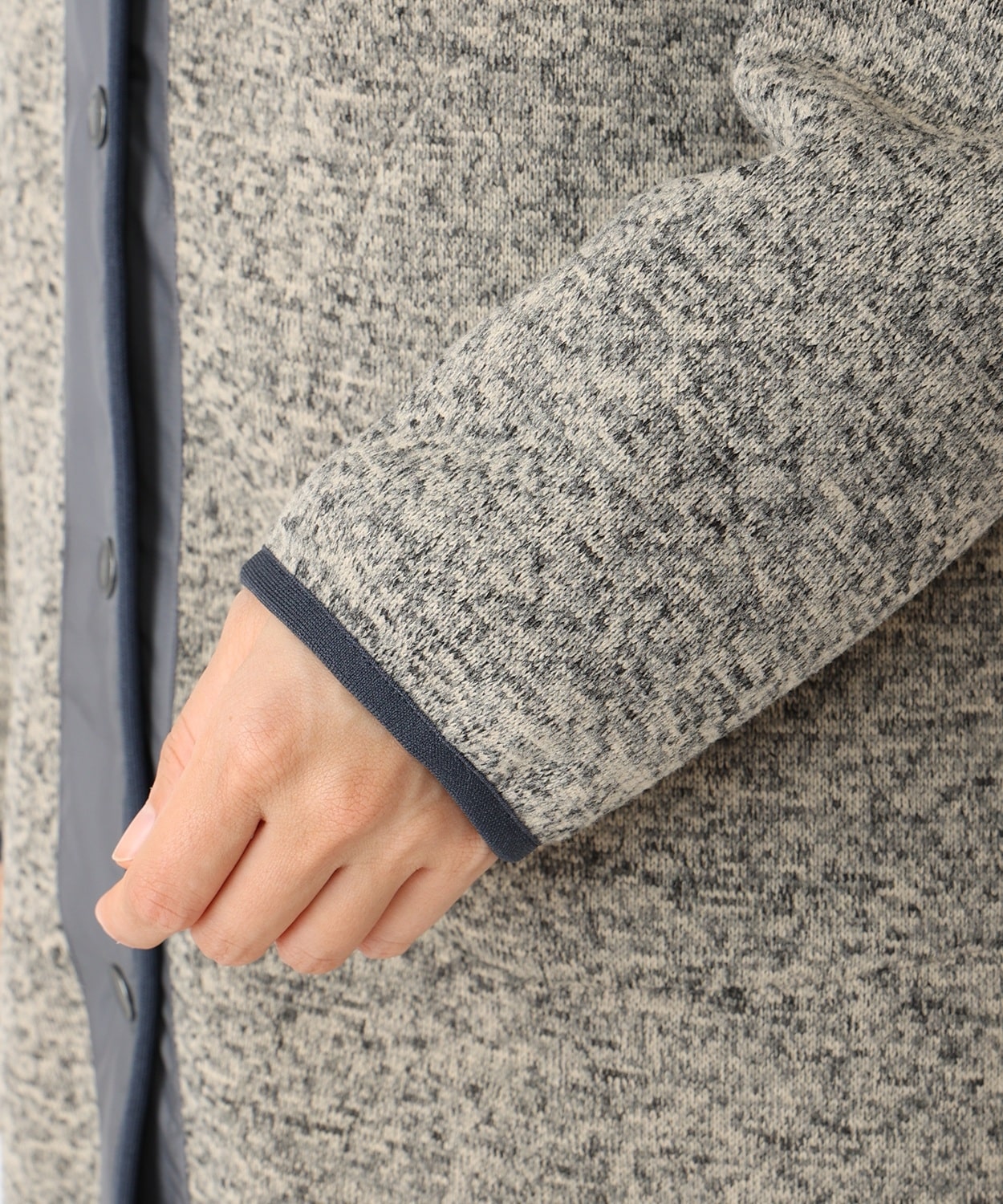 ・表地:メランジ調で上品なルックスを持つセーターライクなフリース素材