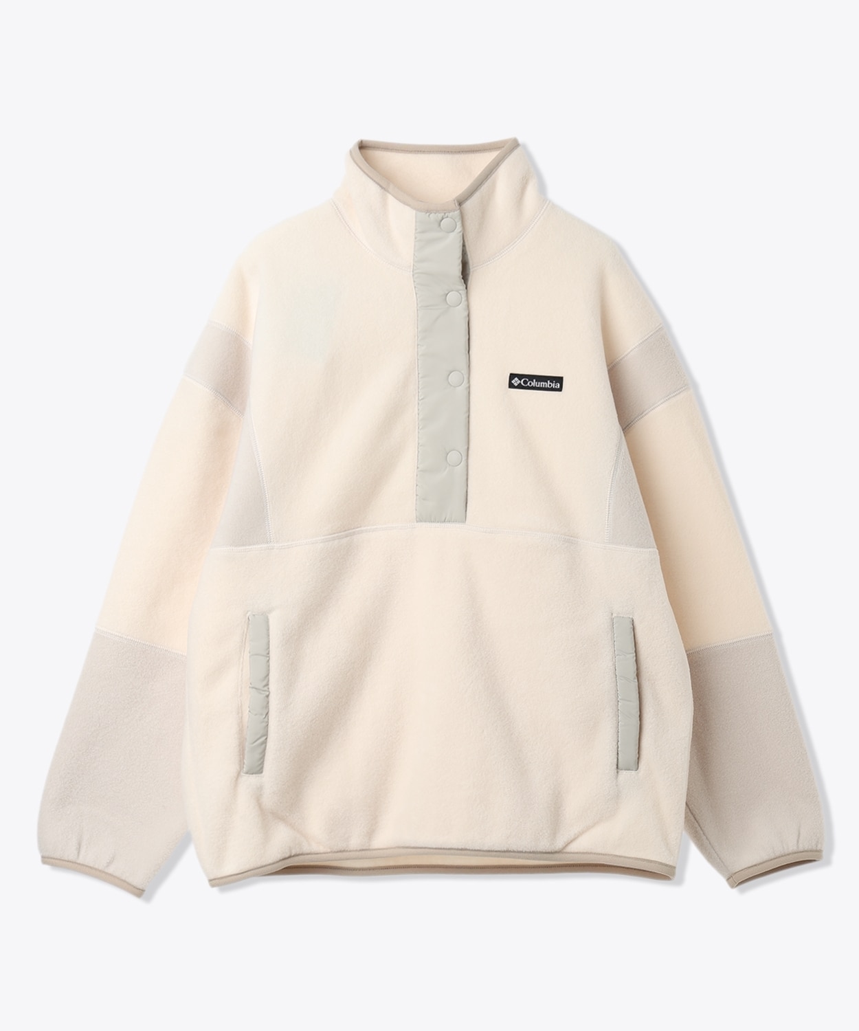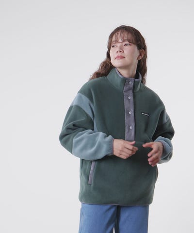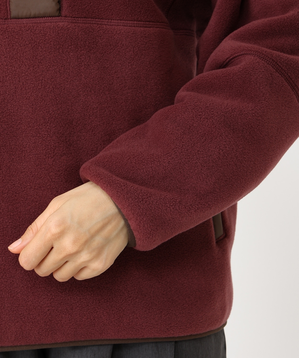 ふっくらとボリューミーで暖かいフリース素材をベースに、異素材配色切り替えでアクセントをプラス。首元を暖かく包み込むようなスタンドネックを採用するなど、アウトドアから日常まで着回し力に優れたアイテムです。