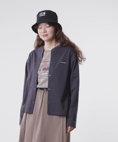 独自の吸湿速乾機能とサンプロテクション機能を備え、フロントはスナップボタンで着脱も簡単。すっきりとしたベーシックなデザインは、一枚やレイヤリングとコーディネートに取り入れやすく、同シリーズのボトムス[PL1413:W Mercer Street Skirt]と合わせて着こなすのもおすすめです。