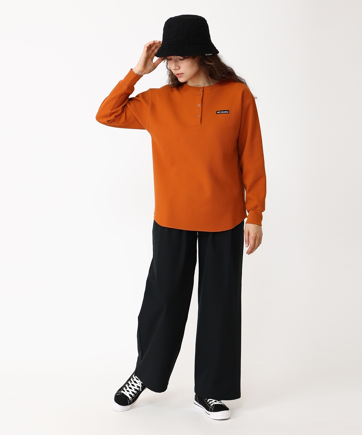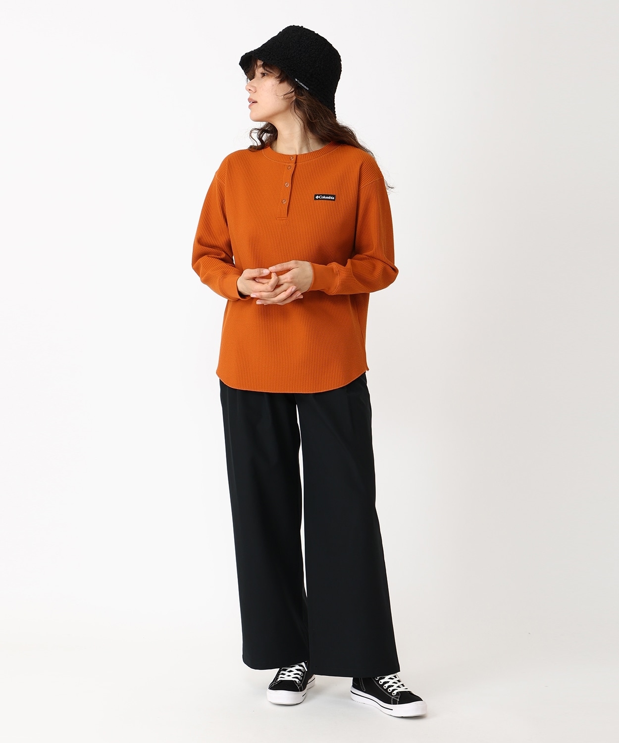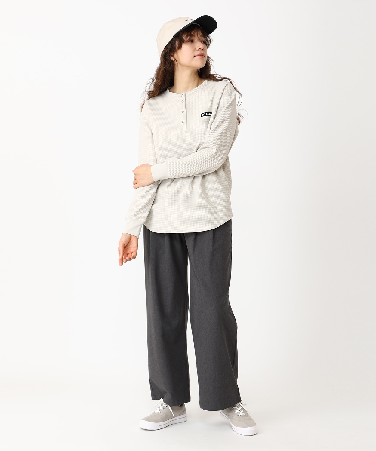 カジュアルなヘンリーネックで一枚やレイヤリングと着回し力抜群