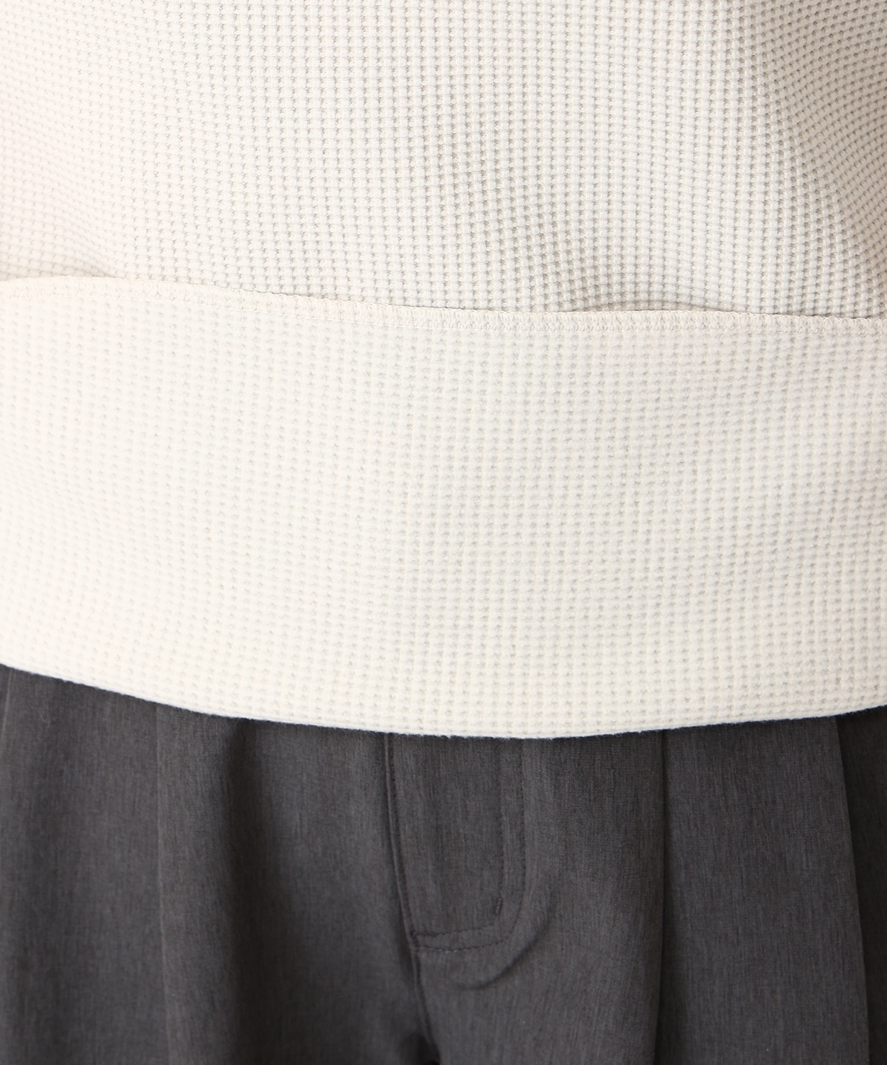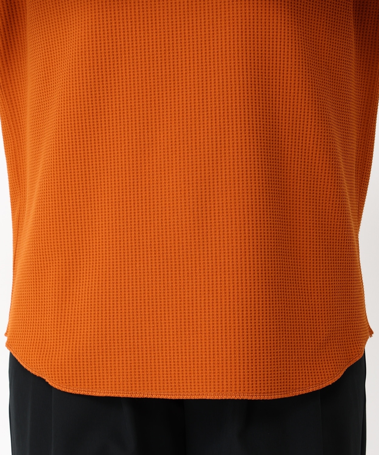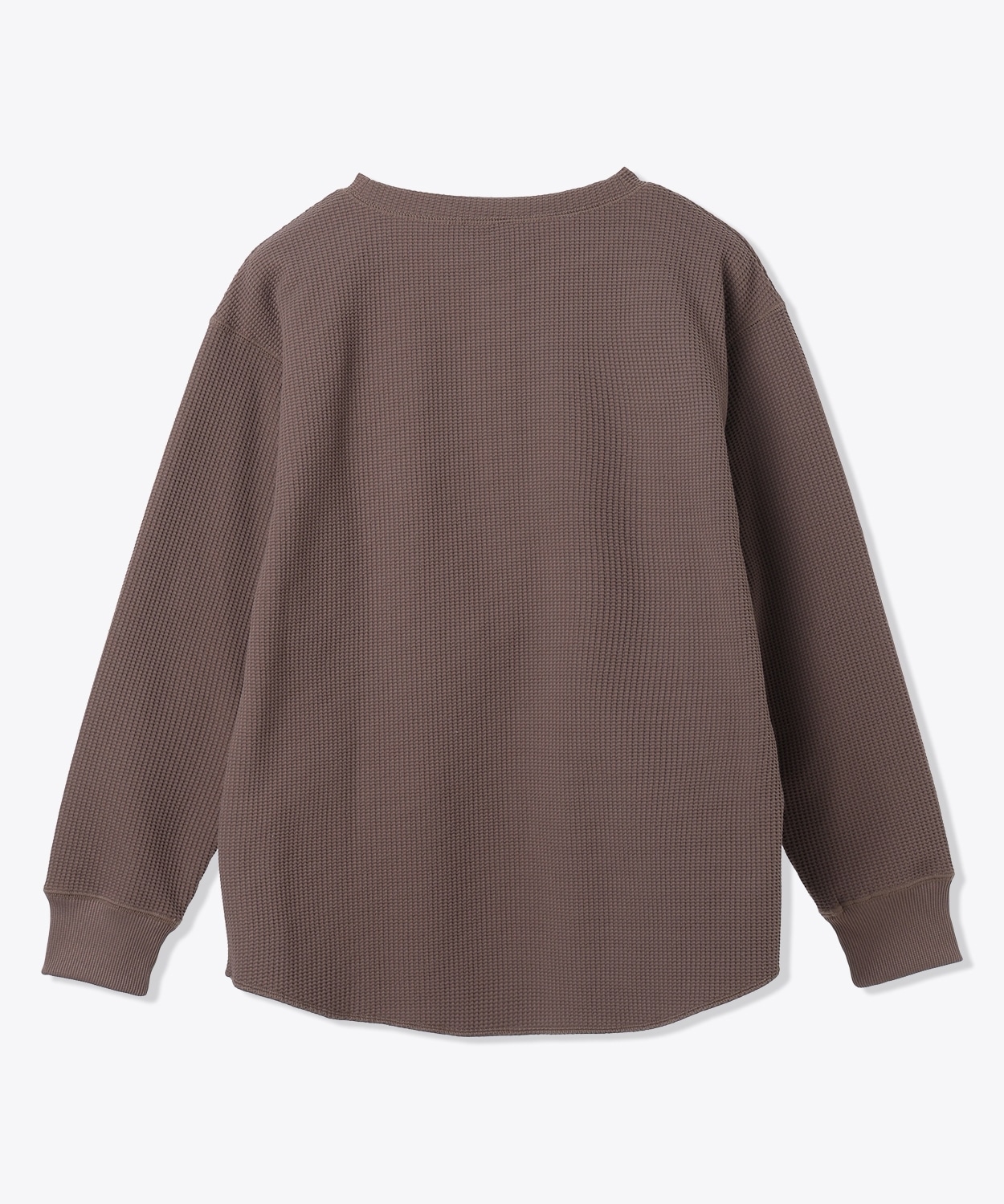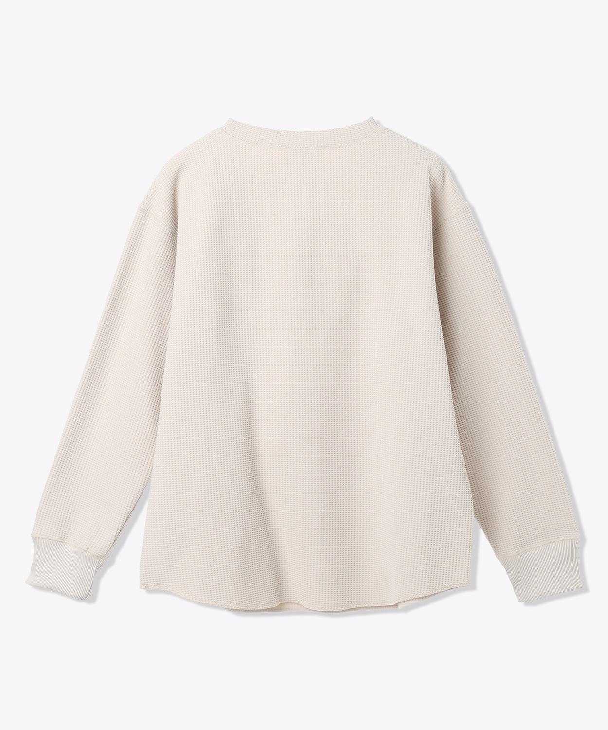 表面の凹凸感が特徴的なハニカムワッフル素材は、さらりと肌ざわりが良く、裏面は起毛を抑えることによりロングシーズンに対応。程よくゆったりとしたフィット感や、柔らかな印象をプラスするラウンドヘムを採用するなど、トレンド感のある着こなしを楽しめるアイテムです。