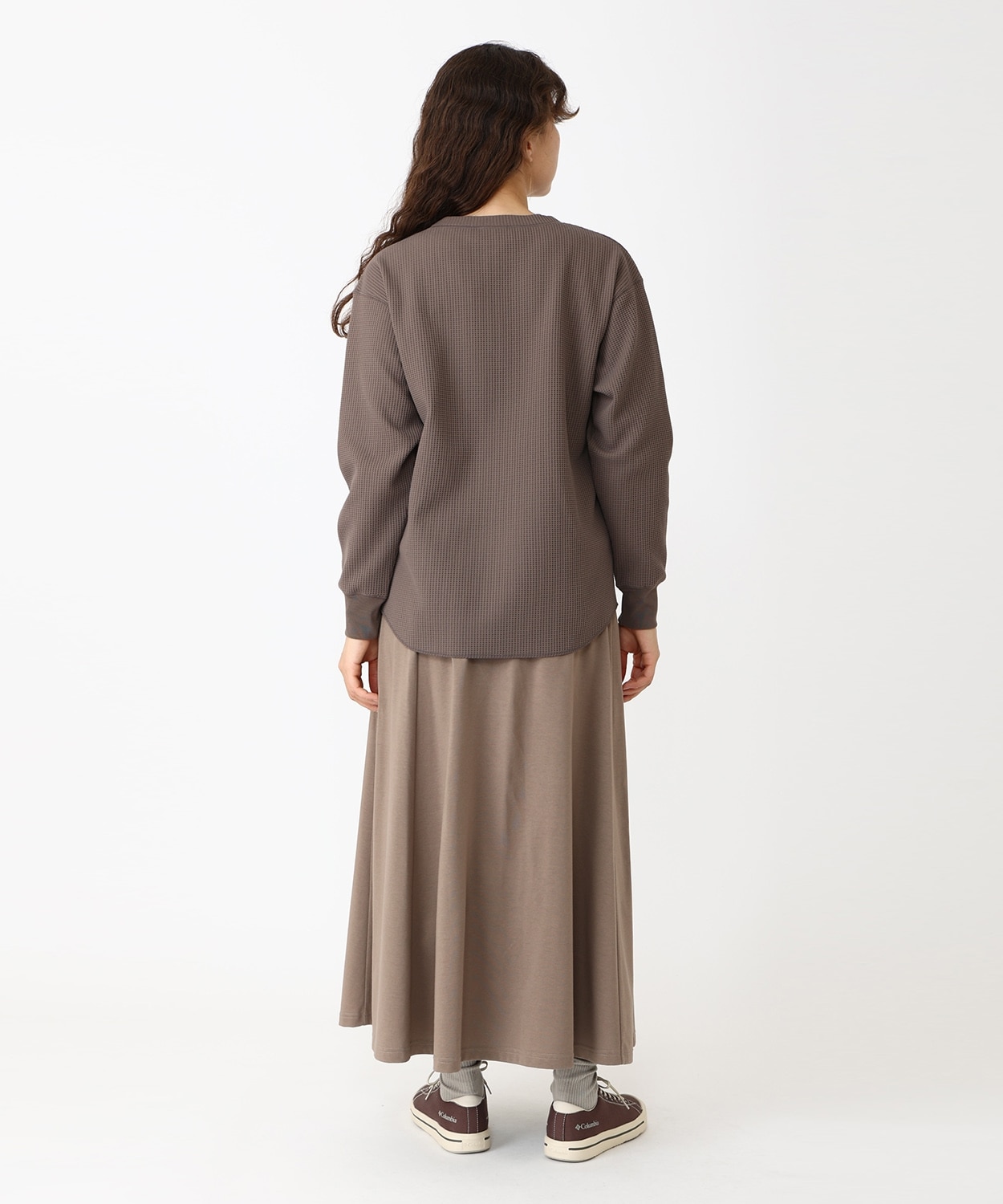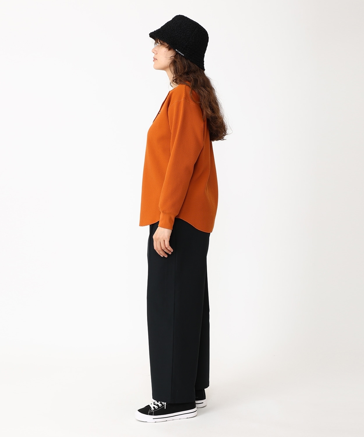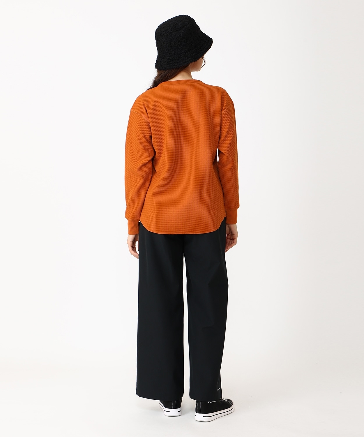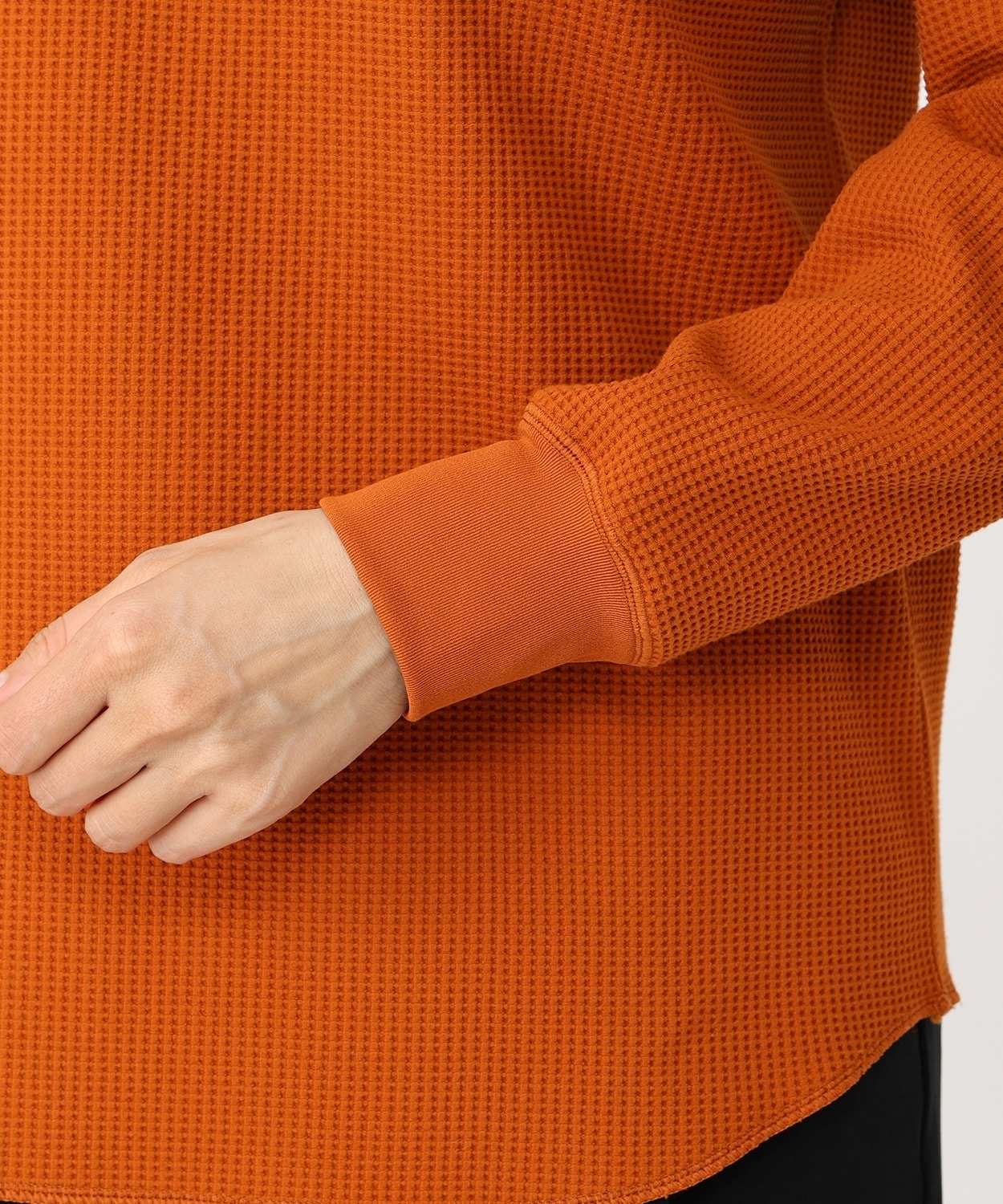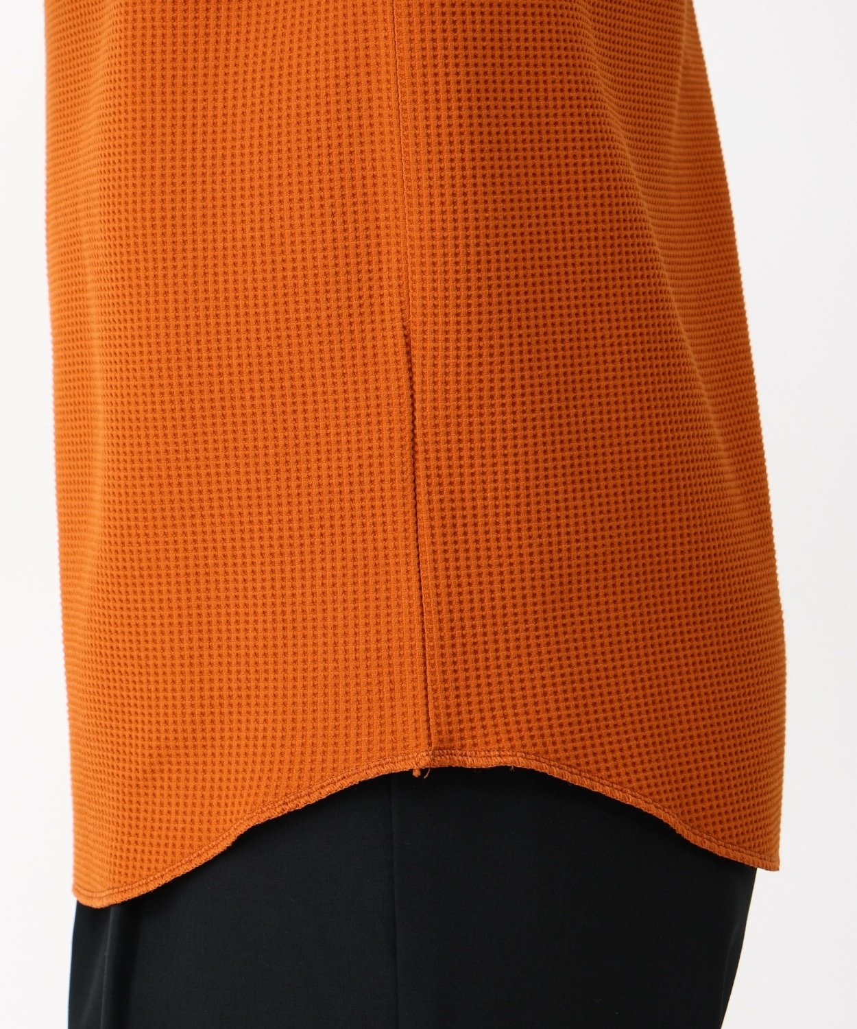 表面の凹凸感が特徴的なハニカムワッフル素材は、さらりと肌ざわりが良く、裏面は起毛を抑えることによりロングシーズンに対応。程よくゆったりとしたフィット感や、柔らかな印象をプラスするラウンドヘムを採用するなど、トレンド感のある着こなしを楽しめるアイテムです。