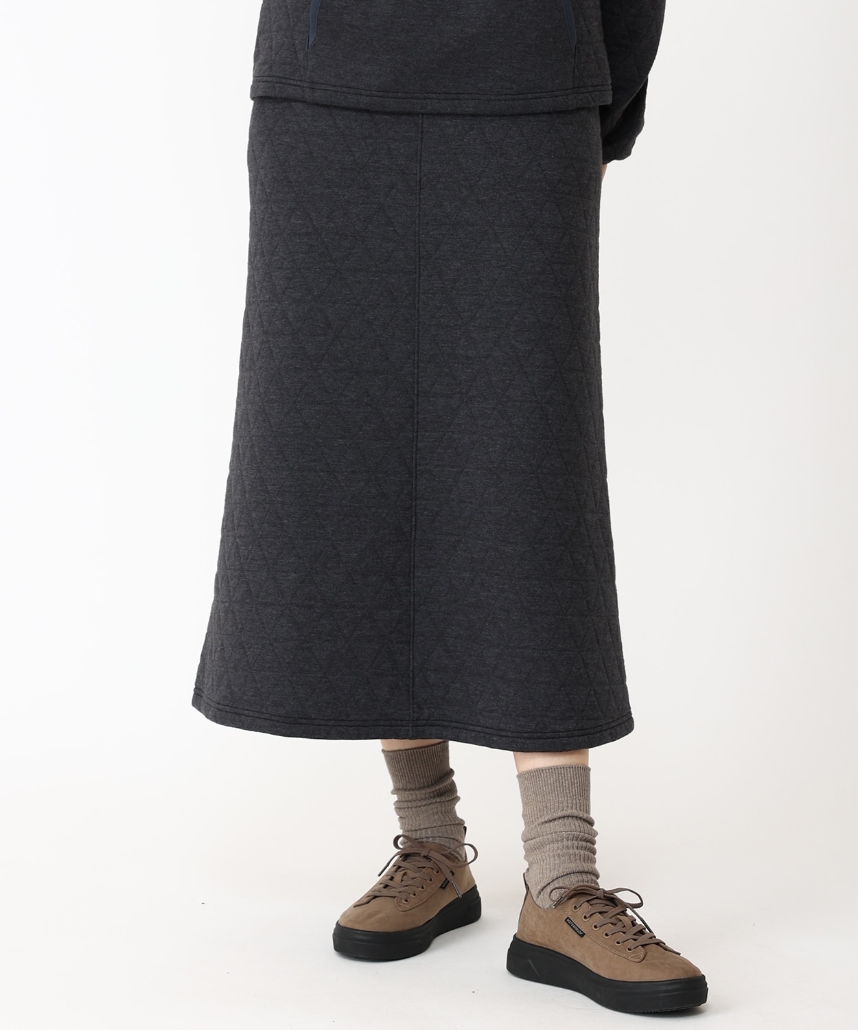 ふっくらとした肉厚感とソフトな肌ざわりを持つ、キルトジャガード素材を採用したロングスカート。