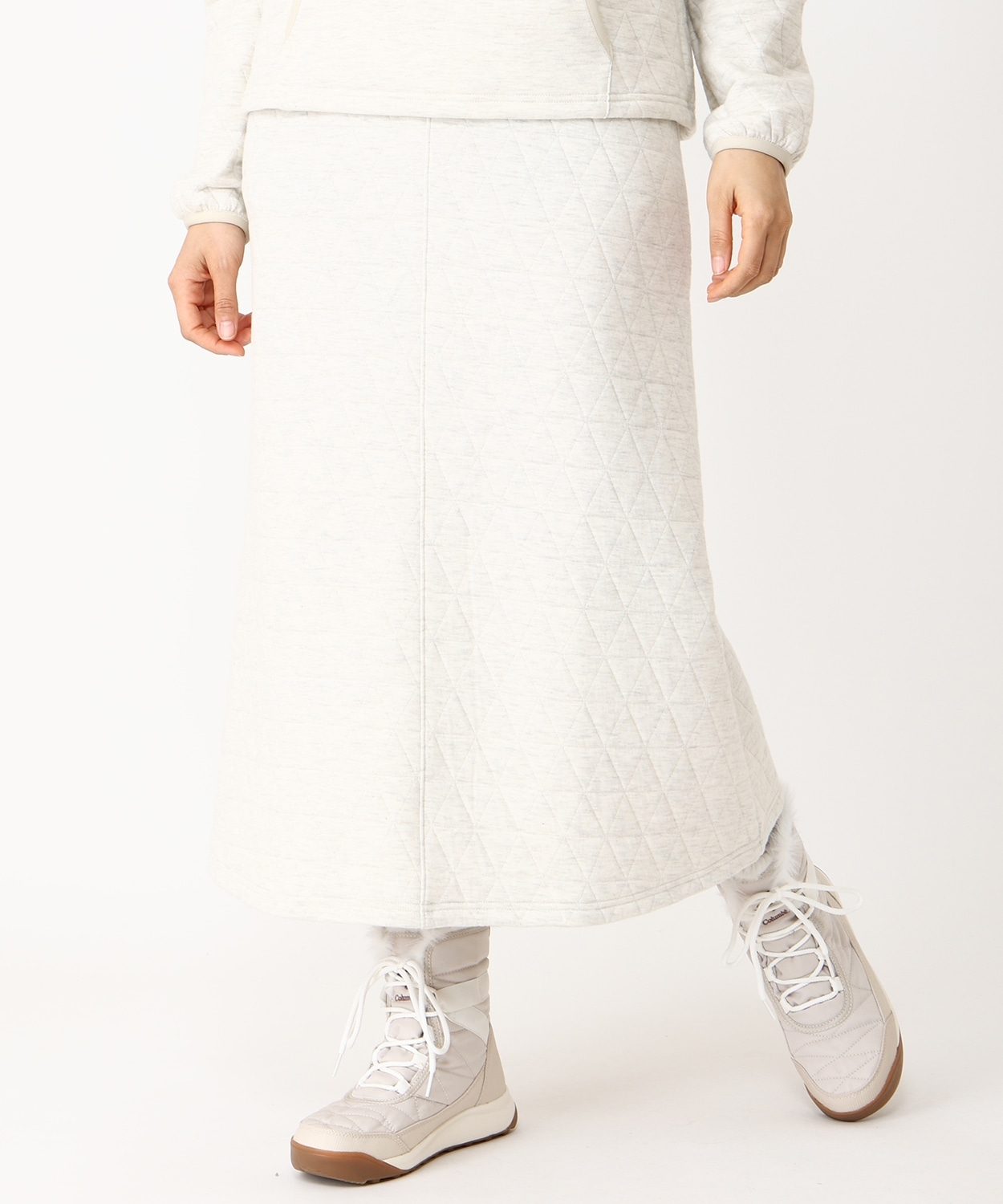 ふっくらとしたキルト素材で大人カジュアルに着こなすロングスカート