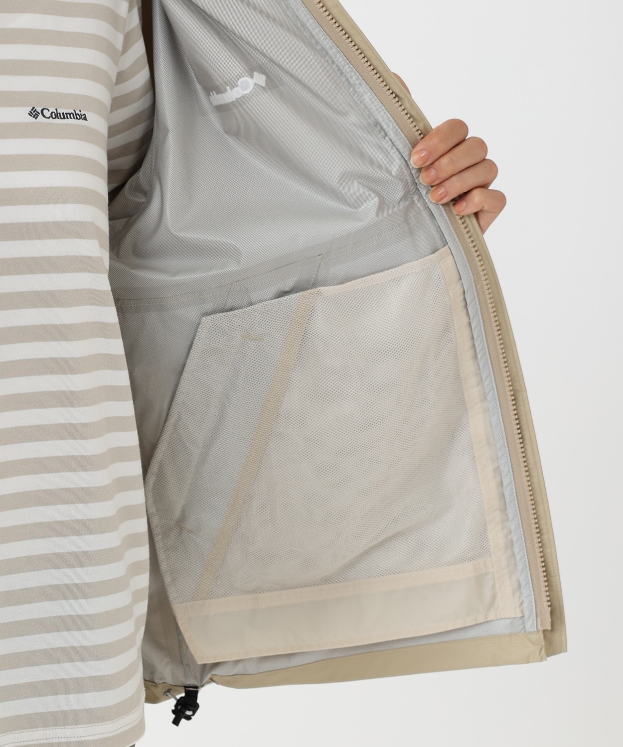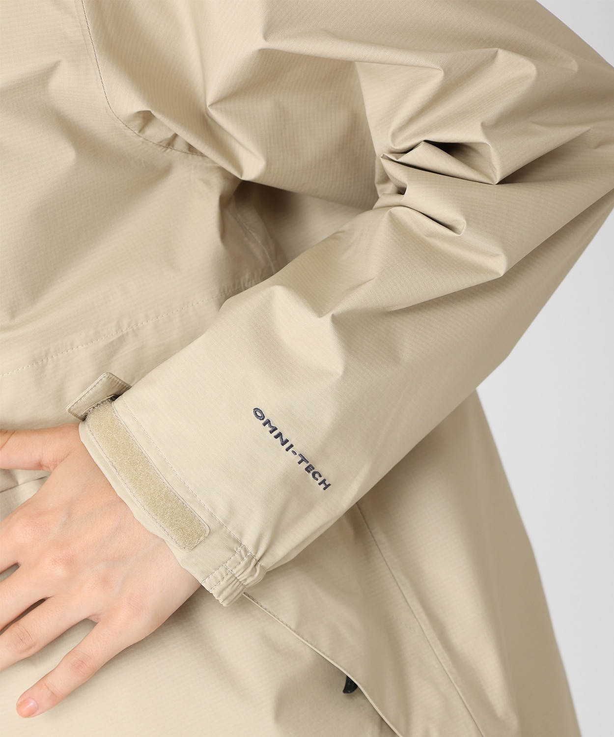 軽い着心地、しなやかな質感、そして張り付き感のない肌離れの良さが魅力です。また、コロンビア独自の防水透湿機能「オムニテック」が水の浸入を防ぎながら、ウェア内の蒸れを放出し、フルシーム加工を施すことで、より防水性を高めました。