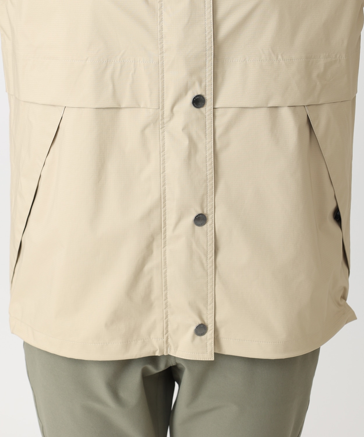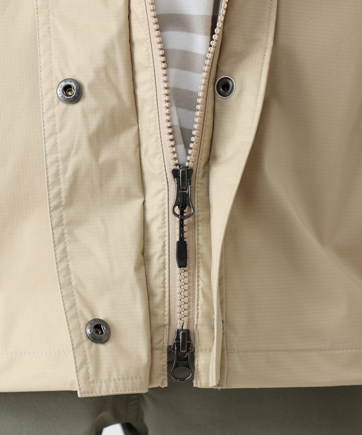 フロントはドットボタンとファスナー仕様のダブル構造で、軽ハイクなどのアウトドアシーンから日常まで幅広いシーンにおすすめです。