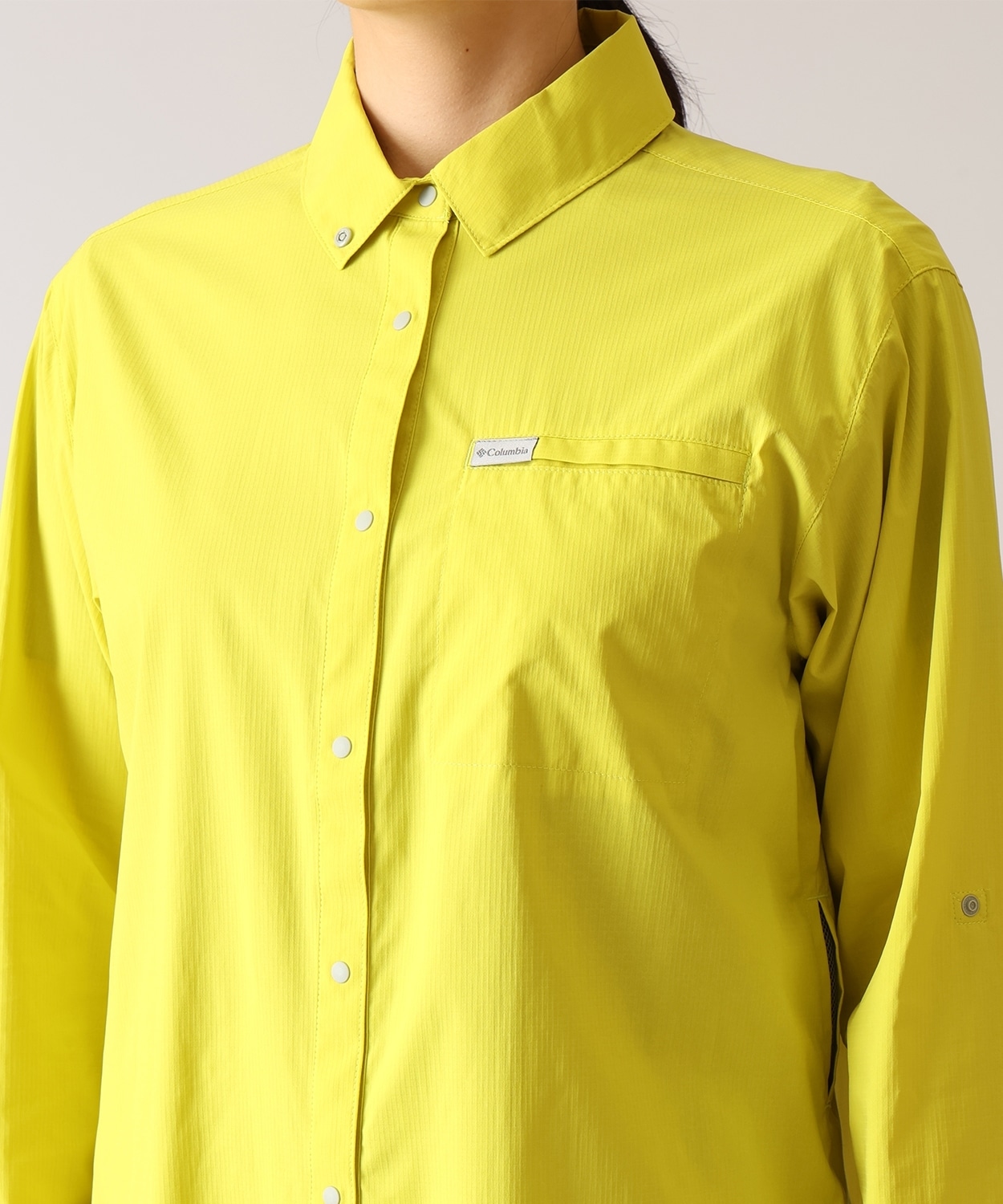 ・袖:体温調整ができるロールアップタブ付き