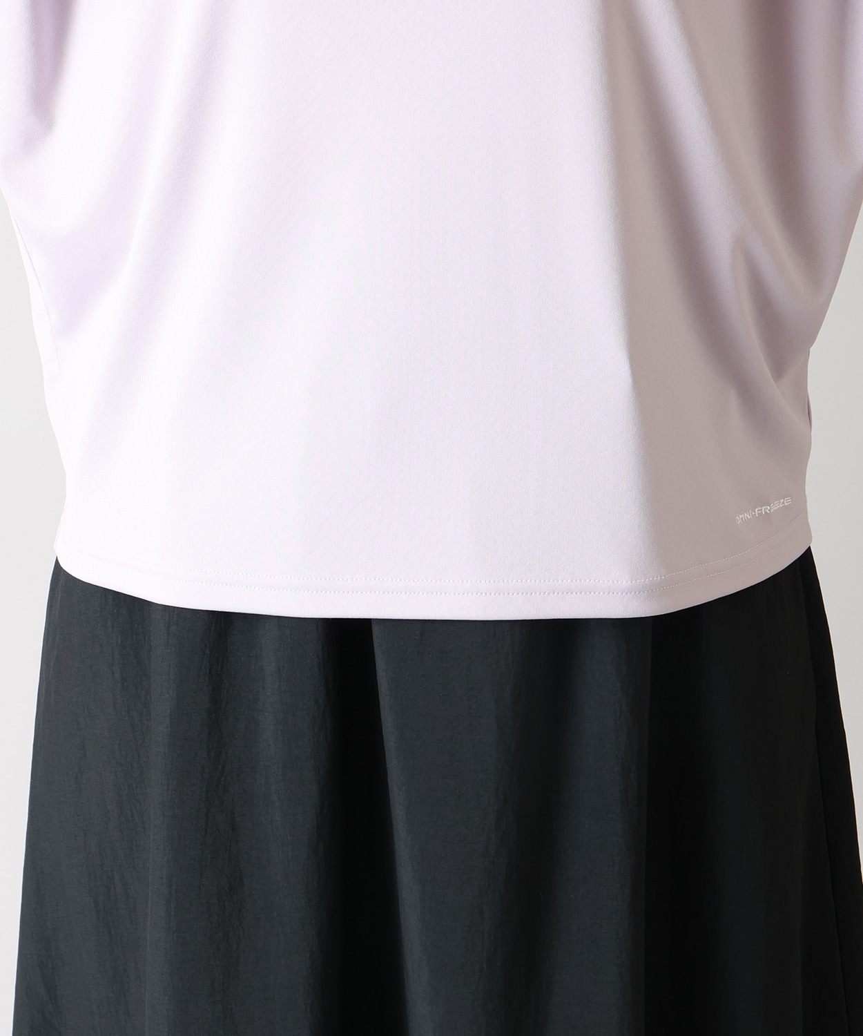 汗を利用して温度を下げる。快適な涼しさを提供する冷却機能。冷却材である小さな青いサークルが、汗を利用して生地全体の温度を瞬時に下げ、持続的なクーリングを提供。気温が高い状況においてもドライで快適な着心地を実現します。