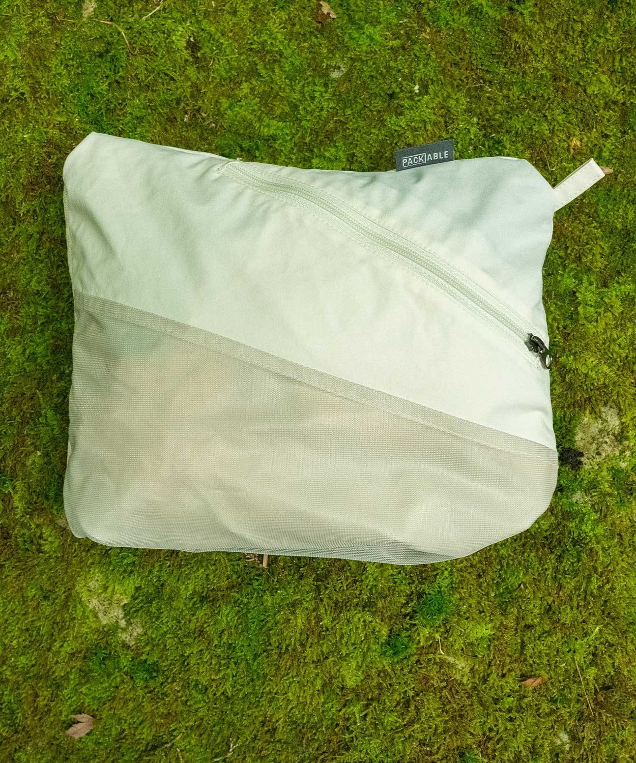 胸元は片手で簡単に開閉できる縦ファスナーポケット、腰元両サイドにはファスナーポケットを設けるなど収納力も充実。さらに、ファスナーポケットに本体を収納できるパッカブル仕様で持ち運びにも便利です。