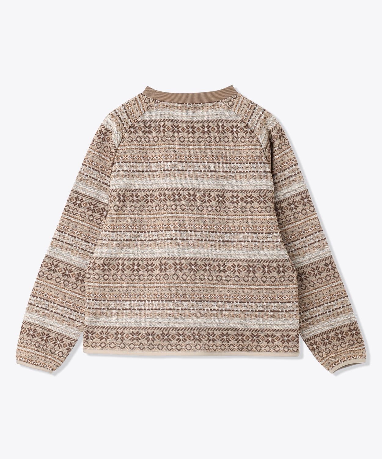 ふんわりとした膨らみのあるバルギー感のある裏地が空気を蓄え、暖かい着心地を提供します。ゆったりとしたリラックスフィットはボトムスを選ばず着回しやすく、シンプルなワンカラーやレトロな雰囲気のあるフォークロア調のオリジナルパターンの3色をご用意しました。