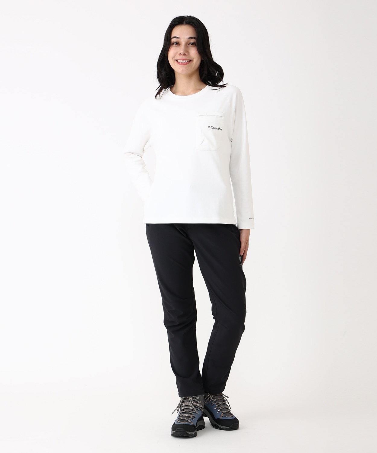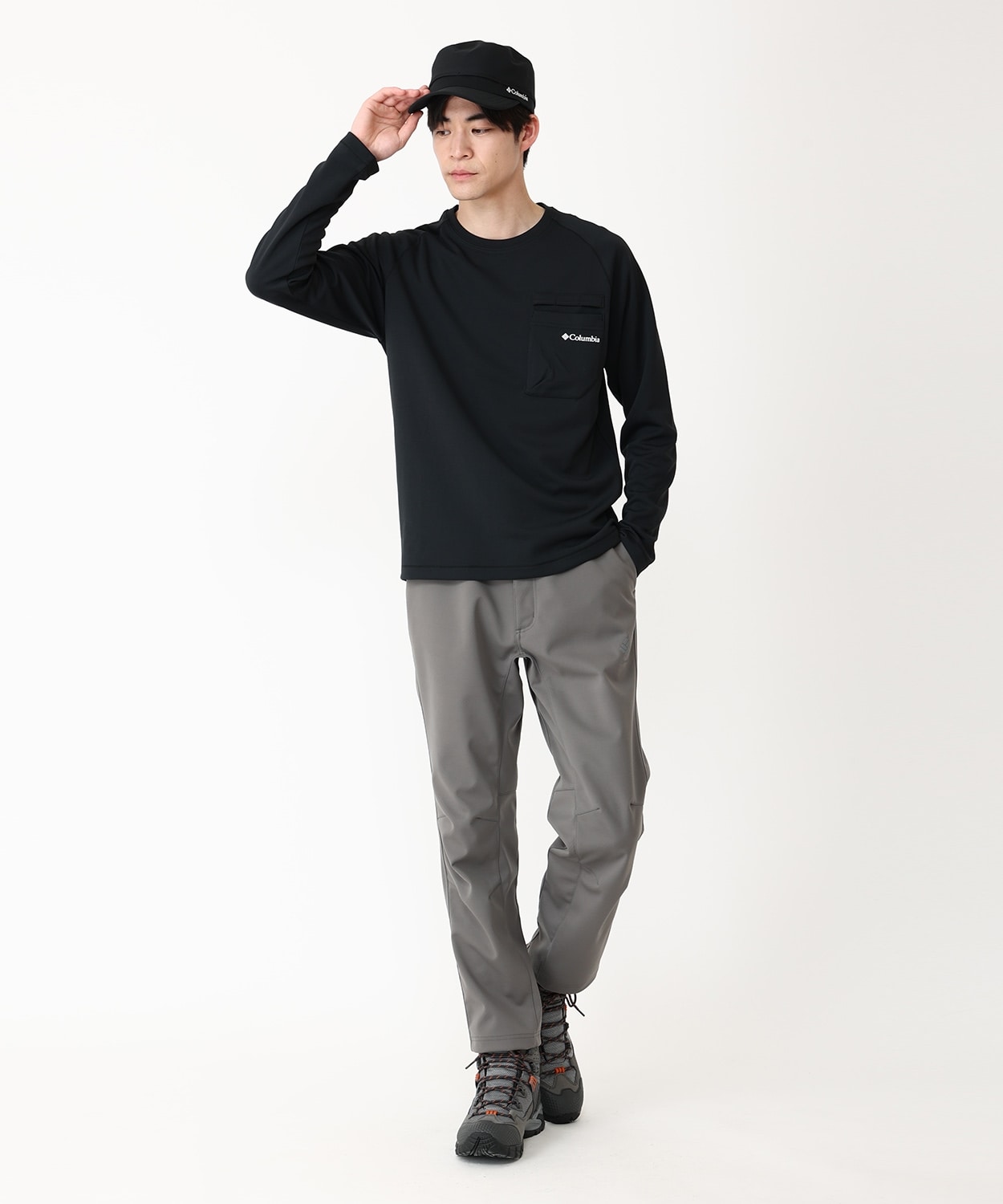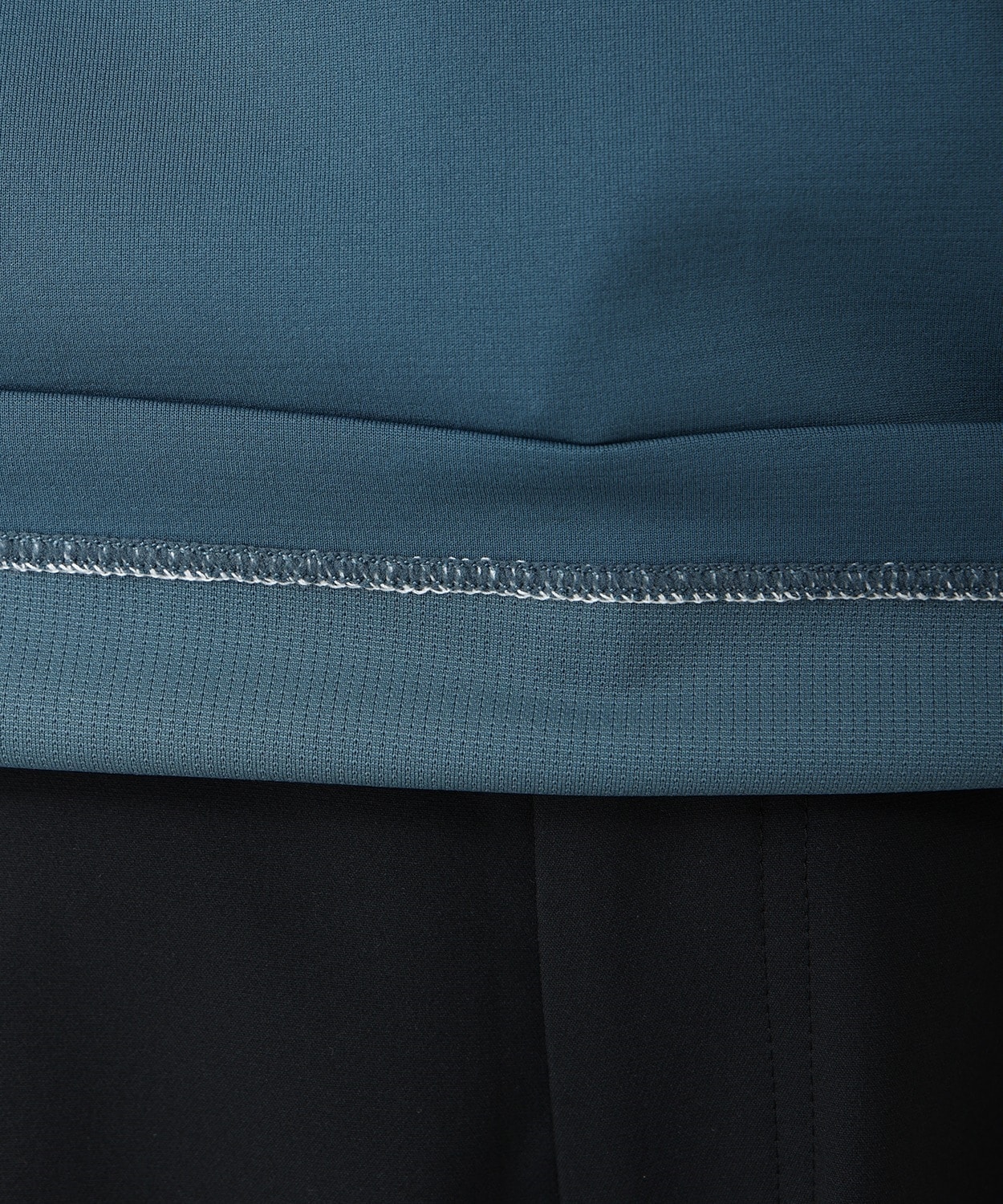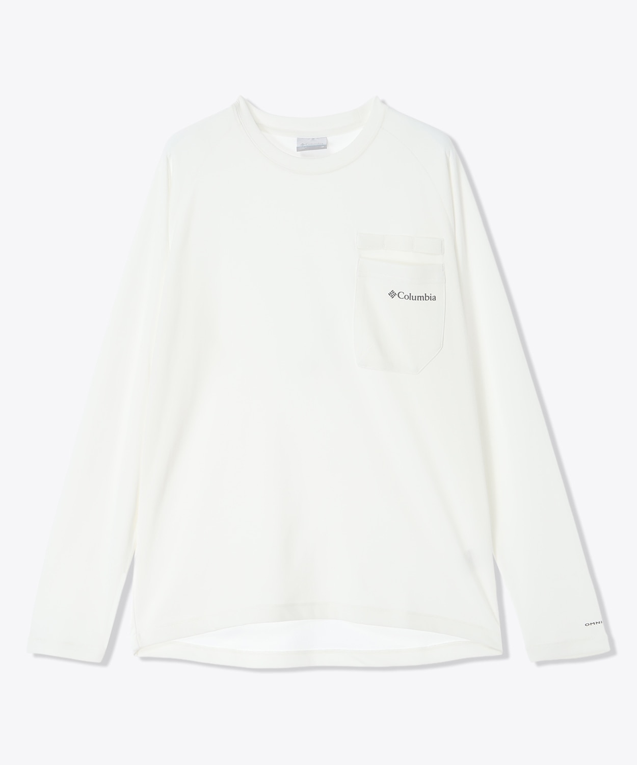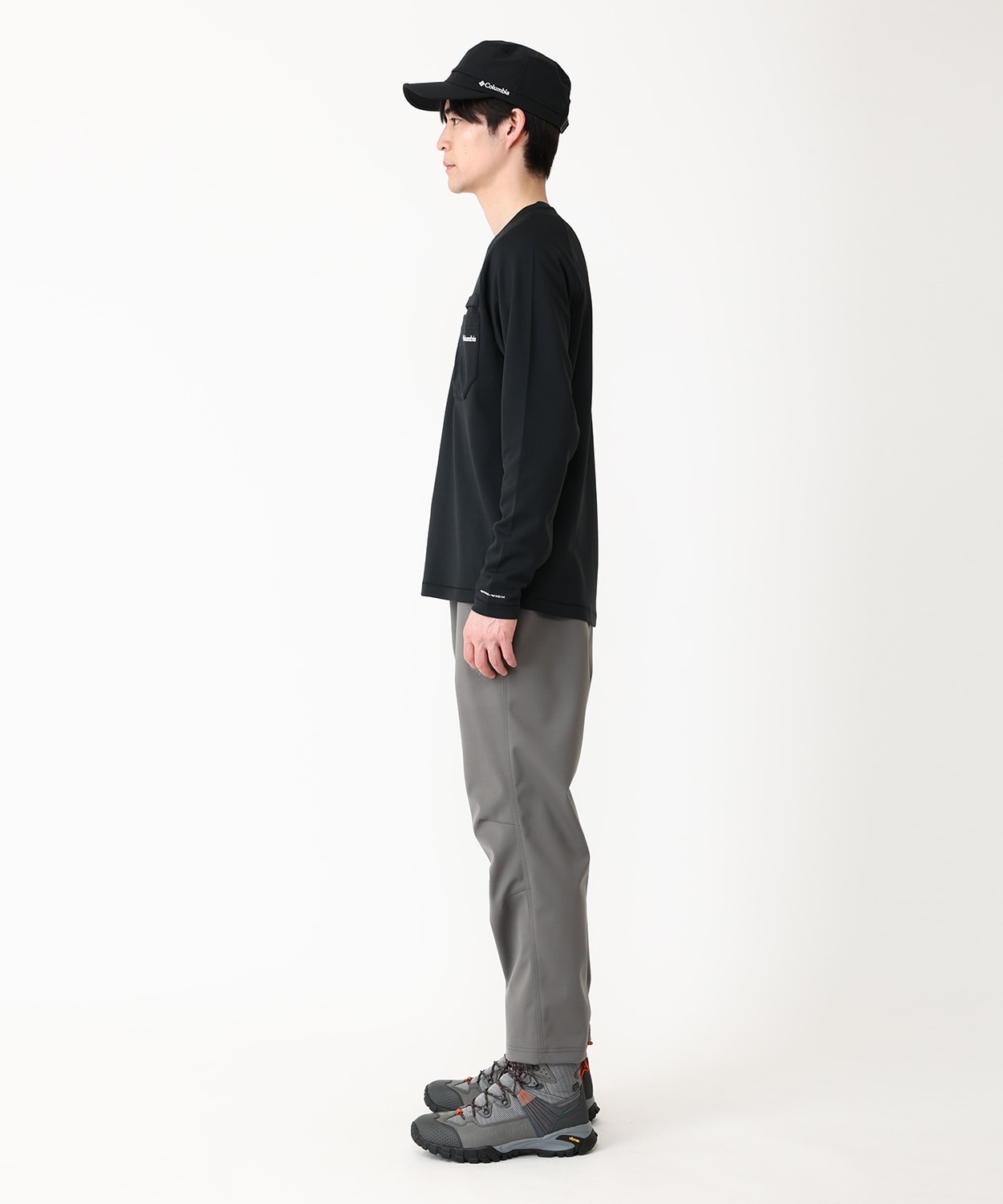 動きに追随する十分なストレッチ性を備え、体にラインを拾いすぎない程よく厚みのある生地感は透けにくく、スタイリッシュな着こなしを実現。独自の吸湿速乾機能とサンプロテクション機能に加えて、肩周りの可動域を広げるラグランスリーブや、左胸のポケットワークなど、ハイク仕様のディテールも充実しています。