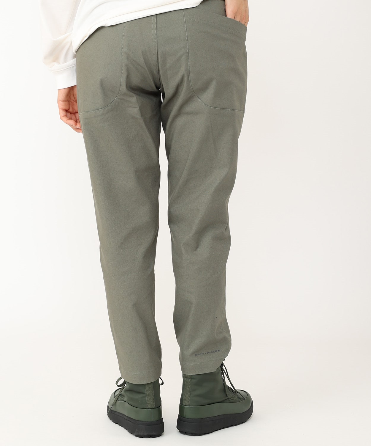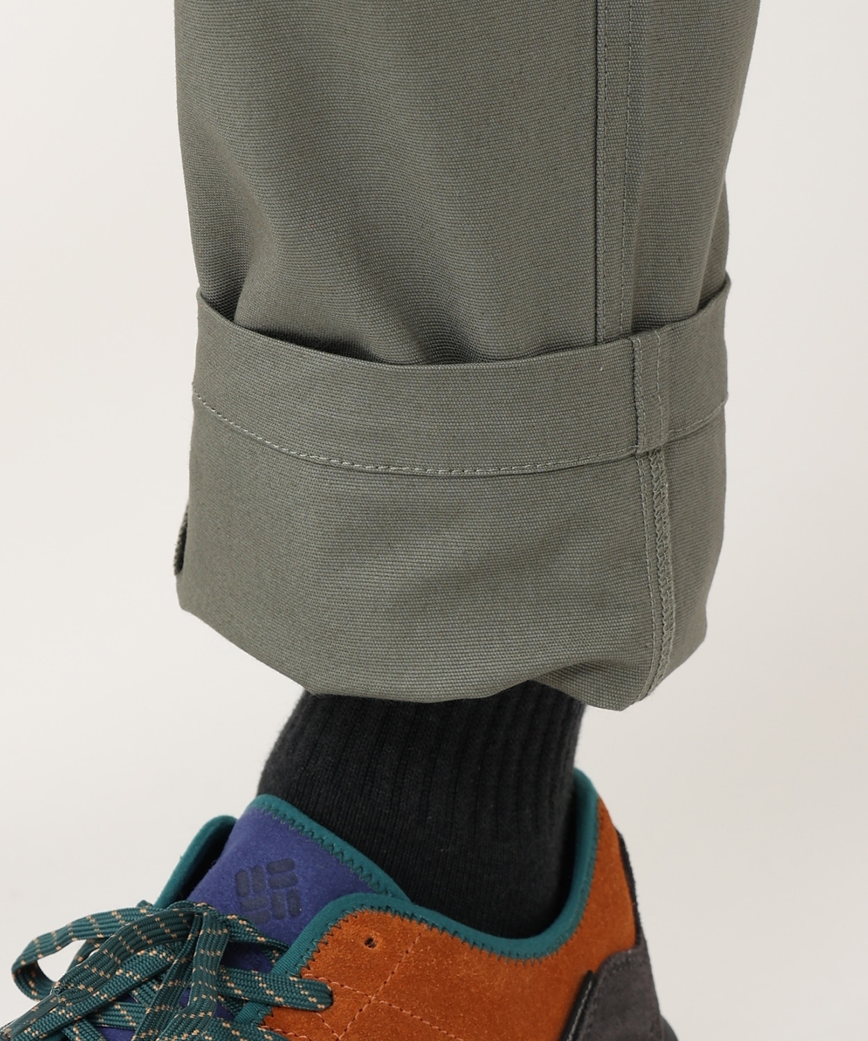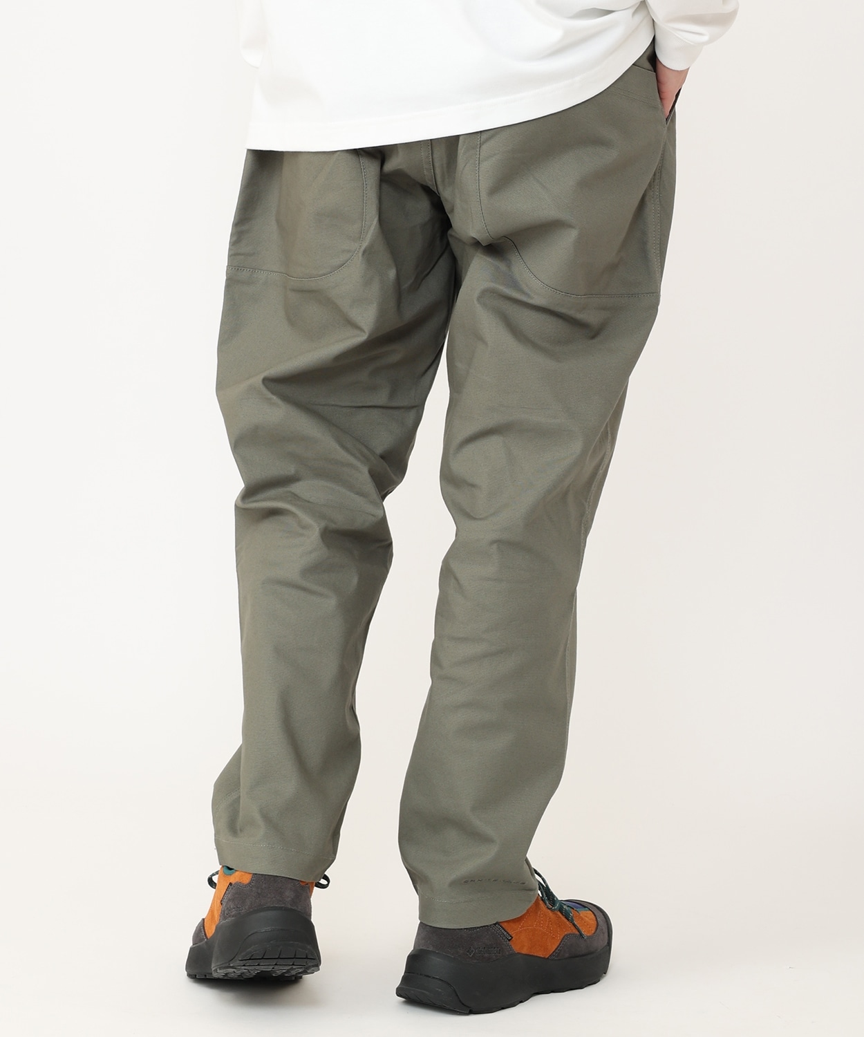 タフさを備えながら、ラギットな雰囲気をもつT/Cストレッチキャンバス生地を採用したカジュアルライクなアイテム。リラックス感のある腰周りから緩やかにテーパードをかけたルーズ過ぎないシルエットは、はき心地も良く、着用シーンの幅も広がります。ウエストループの三角カンに、大容量のヒップポケットを装備するなど、身軽なお出かけにも適したディテールにも注目です。