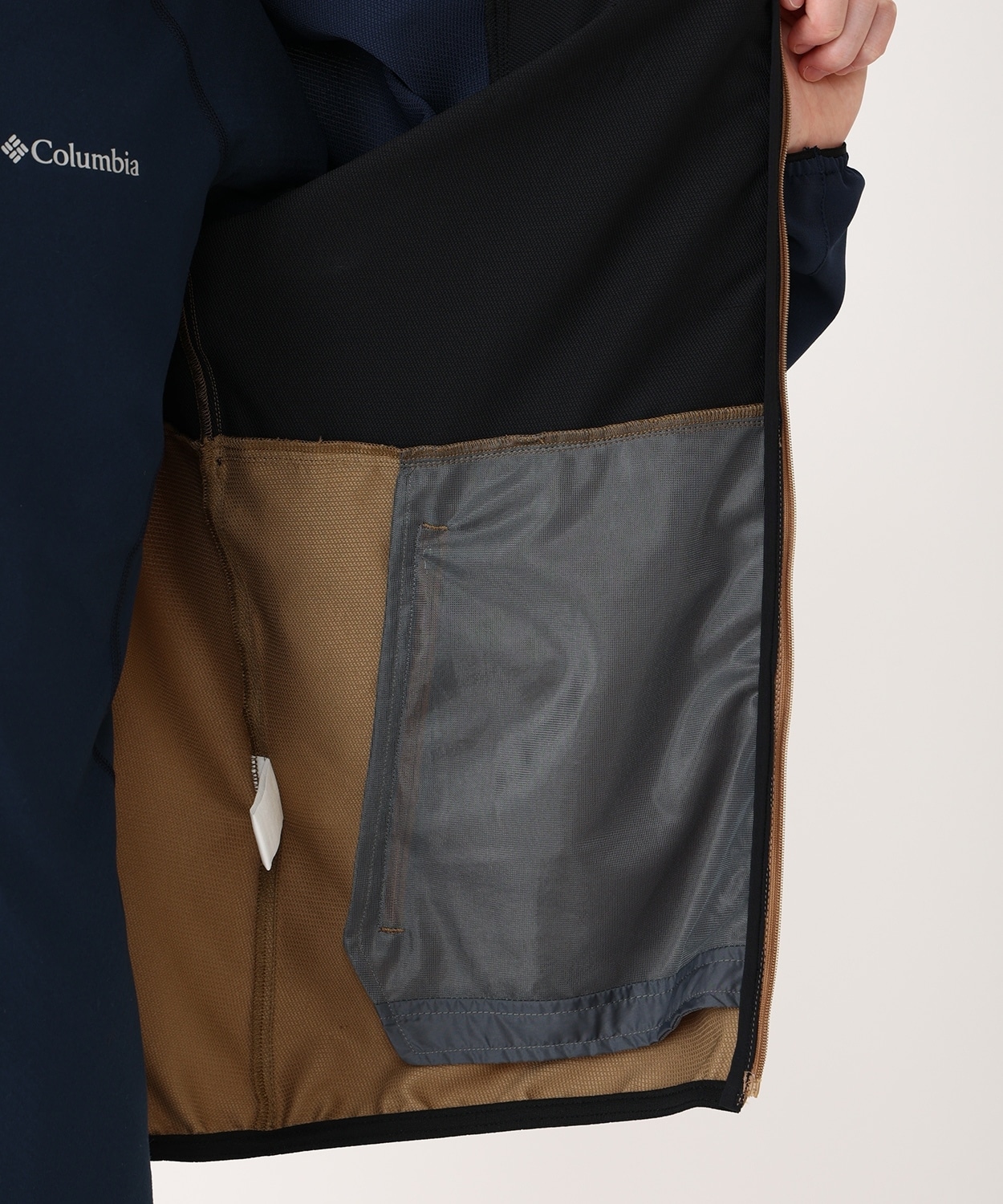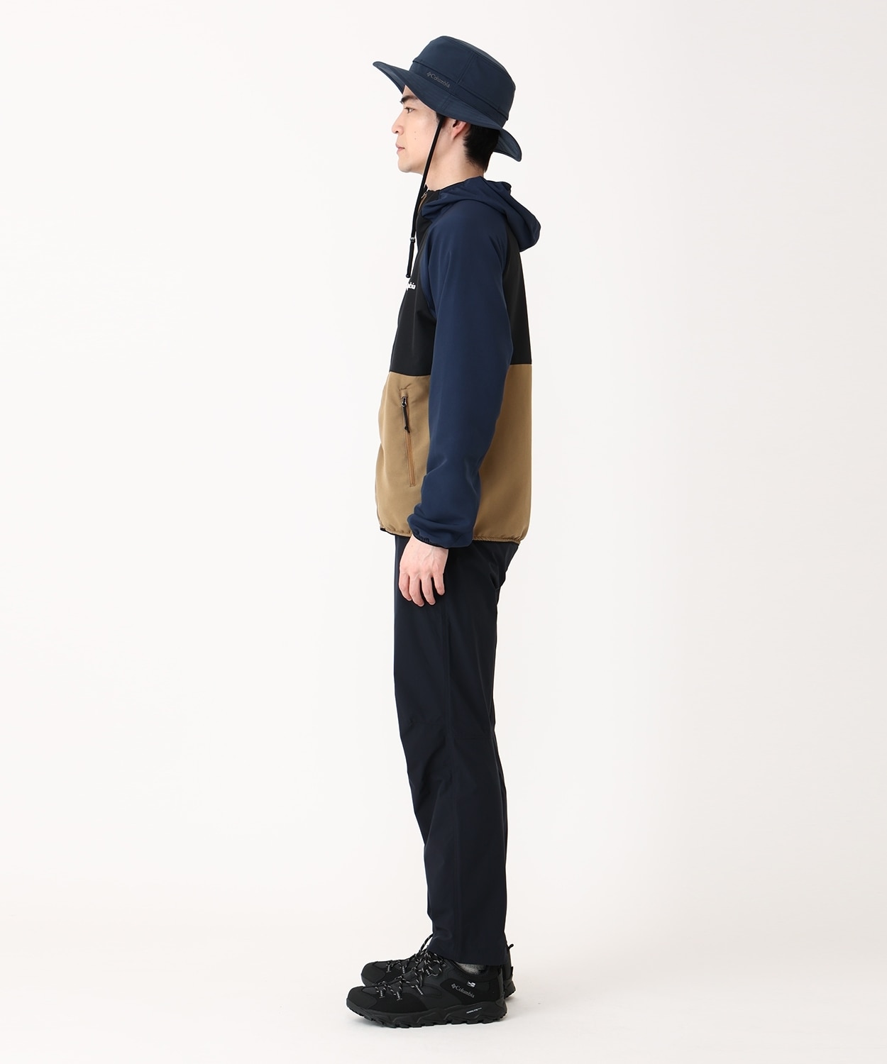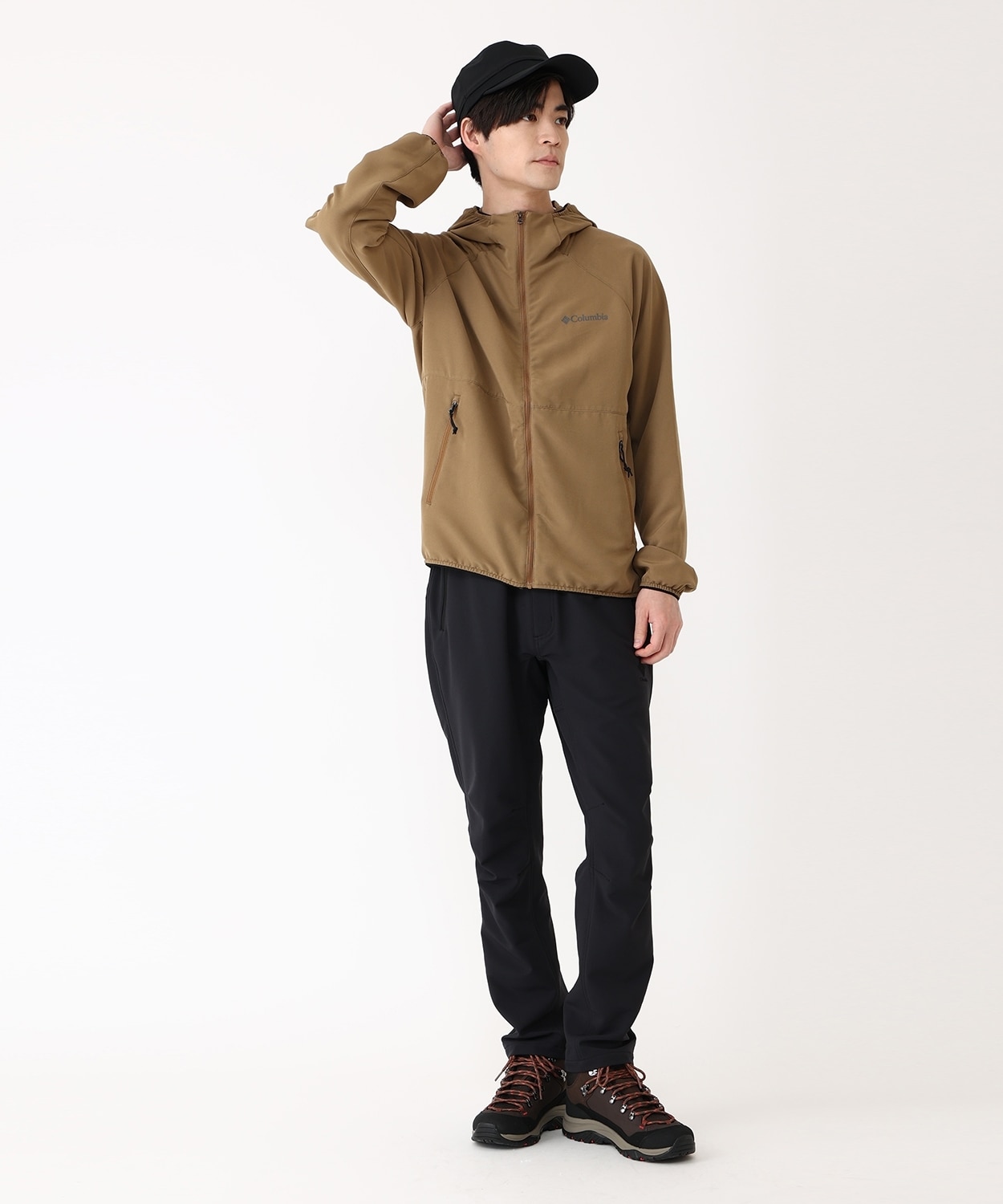 独自のはっ水(撥水)機能とサンプロテクション機能を備え、フード周りや袖裾口は、ストレッチバインダー仕様で軽量性に配慮。シンプルながらも肩周りの可動域を広げるラグランスリーブや、立体的な首周りのビブネックラインを採用するなど、コロンビアらしいディテールも込めた一着です。