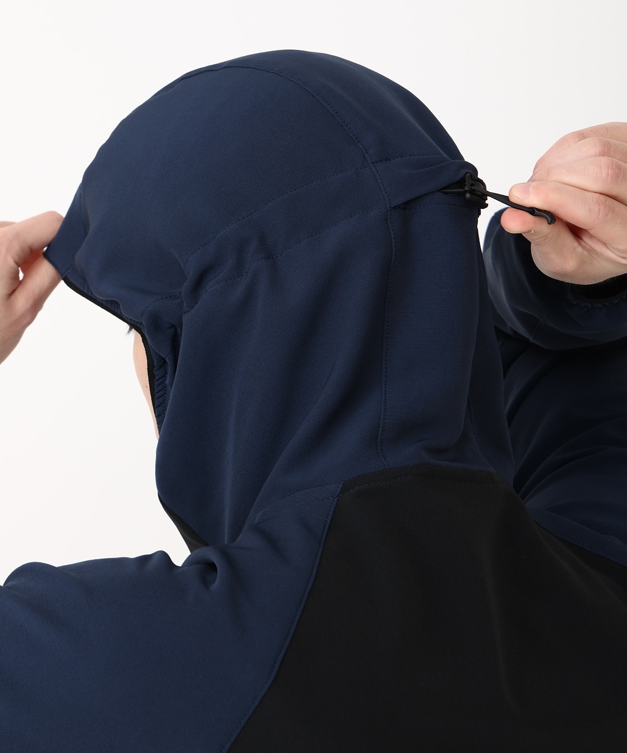 ・フード周り、袖口、裾口:ストレッチバインダー仕様で軽量性に配慮